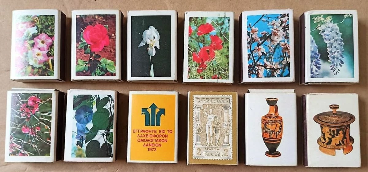 12 ελληνικά σπιρτόκουτα δεκαετίας ’70: 8 της σειράς ”από τους ελληνικούς κήπους” + 4, 1972 – 73, 10€
