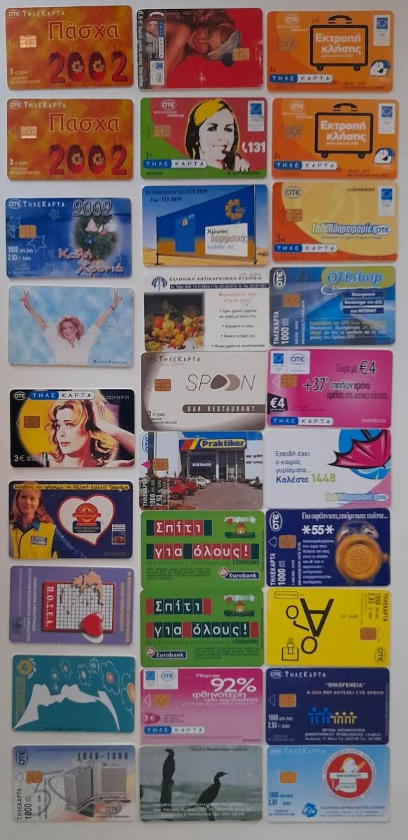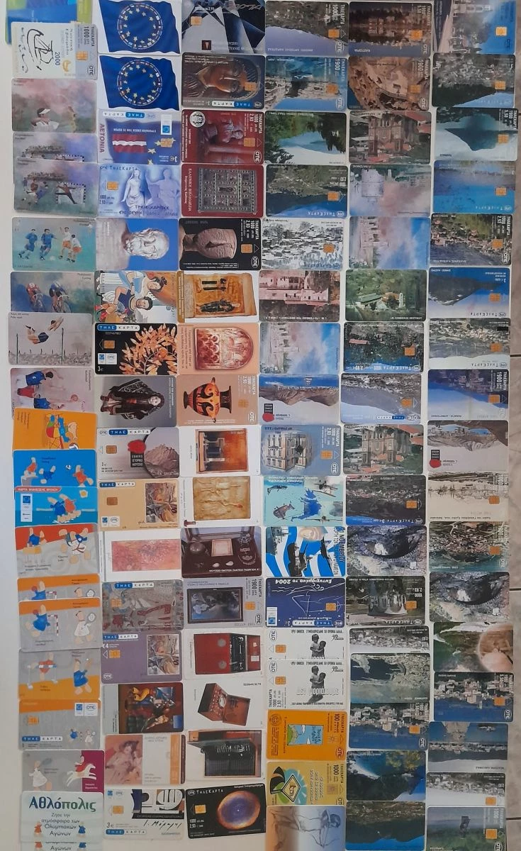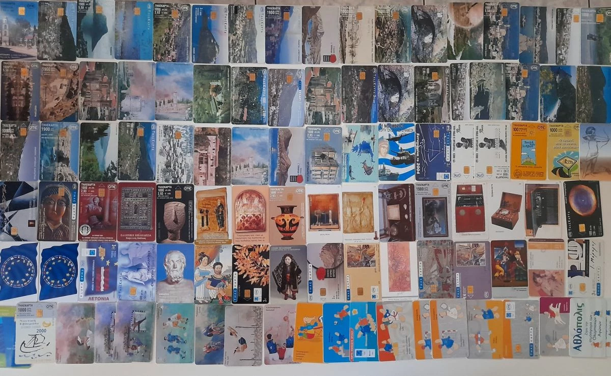 132 συλλεκτικές τηλεκάρτες με τα ομορφότερα μέρη της Ελλάδας μας, ολυμπιακά αγωνίσματα, μουσικά και ιστορικά αντικείμενα, σημαίες χωρών, φωτογραφίες της μοναδικής Μελίνας Μερκούρη, πανελλήνιας ομοσπονδίας εθελοντών αιμοδοτών και πολλές άλλες.