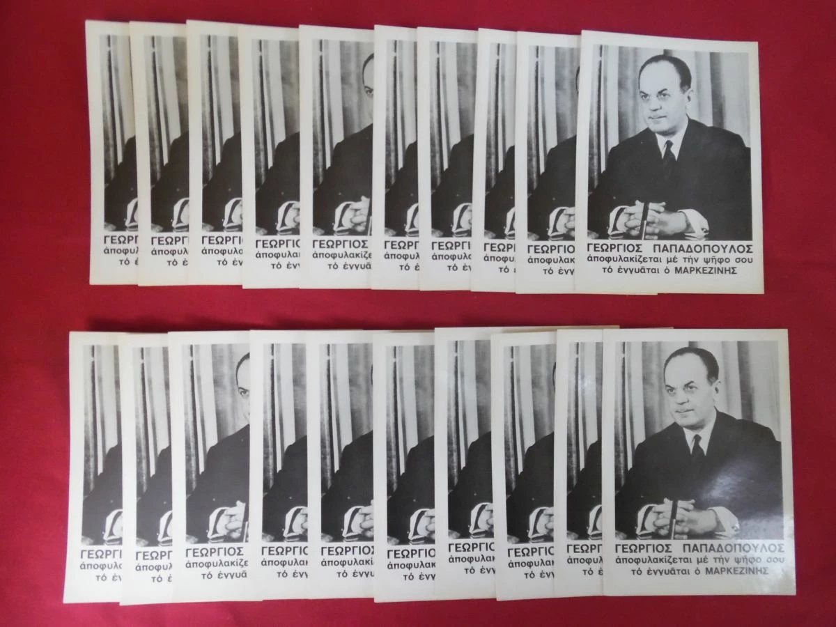 20 Aυτοκόλλητα με την μορφή του Γ. Παπαδόπουλου της δεκαετίας του 70.
