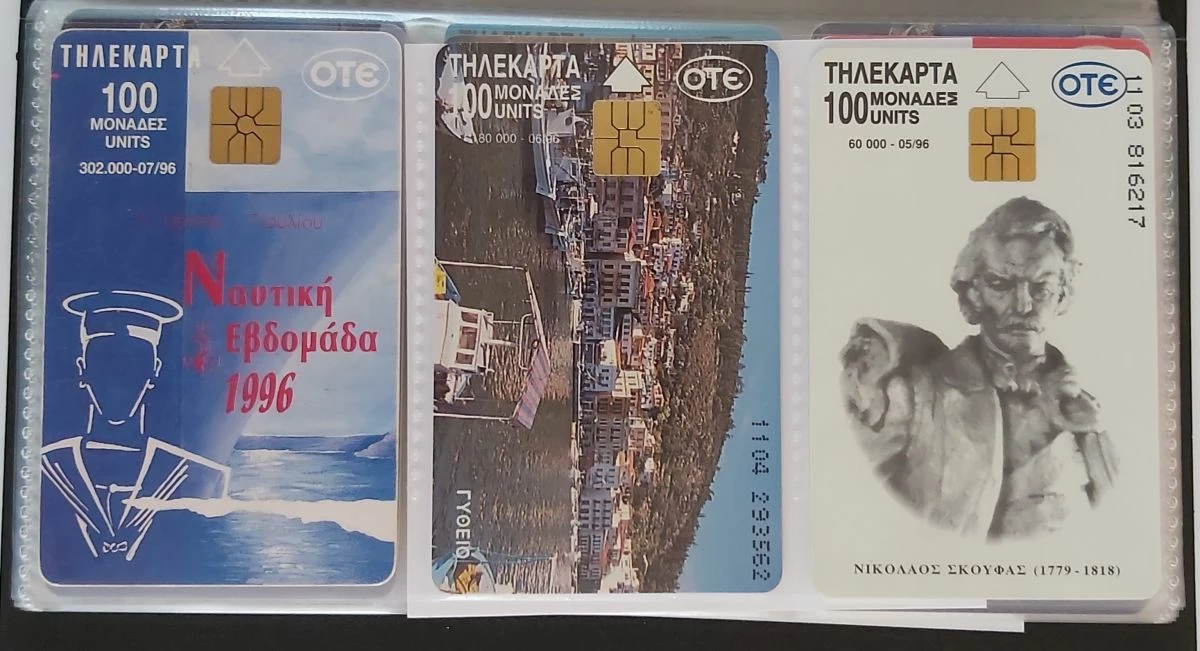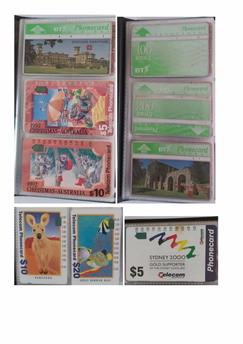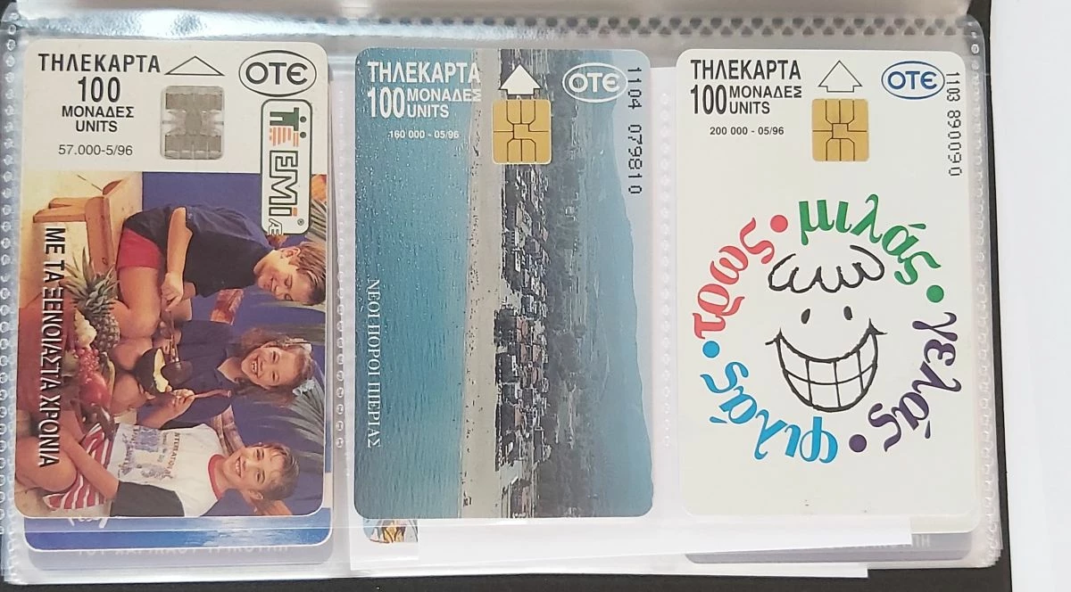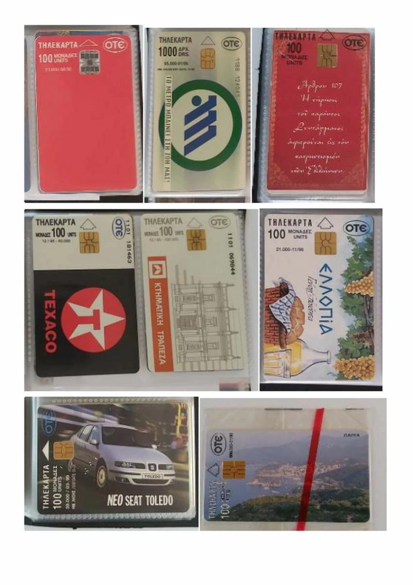 Πωλούνται 246 τηλεκάρτες ( 225 Ελληνικές , 17 Αυστραλίας και 4 Αγγλίας ) σε άριστη κατάσταση, όλες μονές, τοποθετημένες σε 5 θήκες.