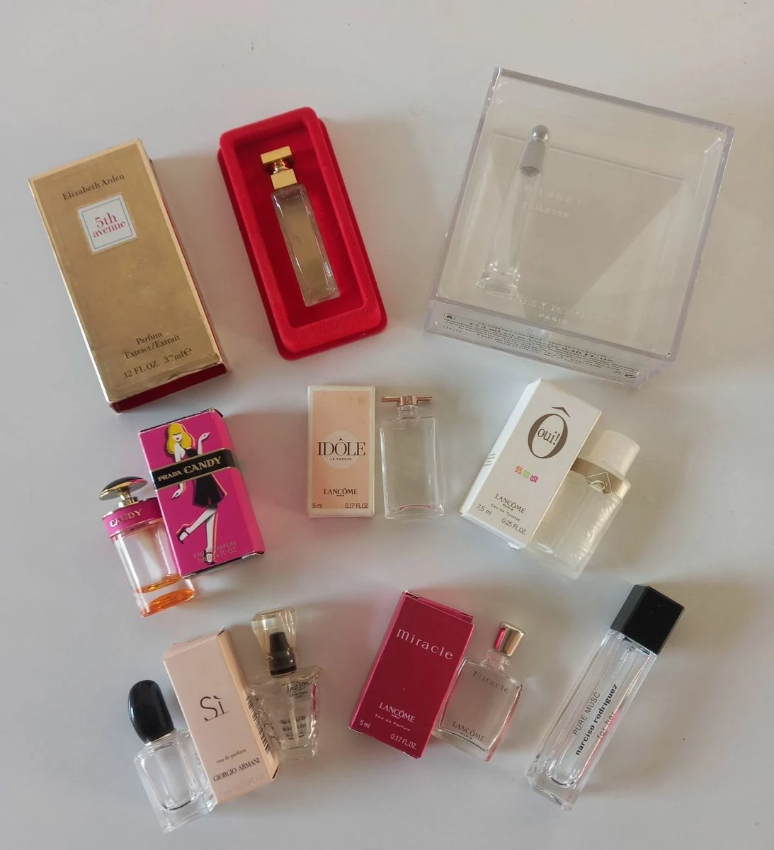 9 μπουκαλάκια μινιατούρες γυναικείων αρωμάτων άδεια ,
