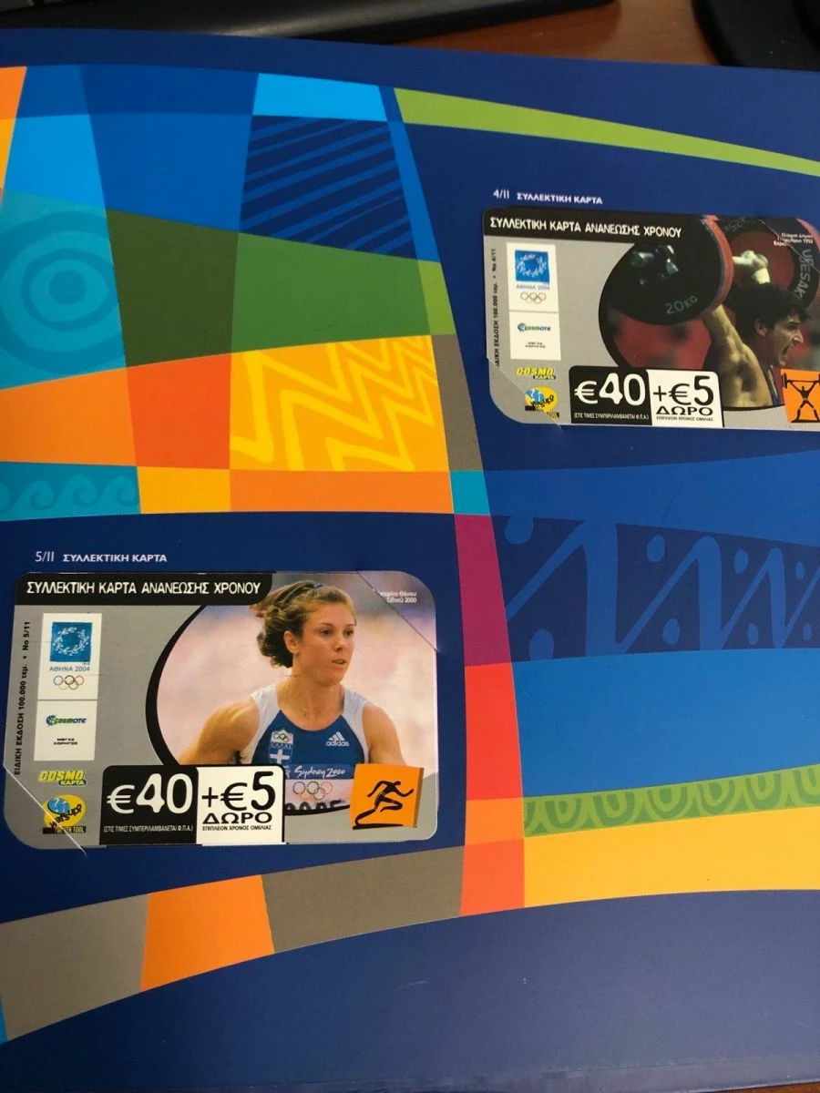 ΑLBUM ΣΥΛΛΕΚΤΙΚΩΝ ΚΑΡΤΩΝ ΑΝΑΝΕΩΣΗΣ ΧΡΟΝΟΥ ΟΜΙΛΙΑΣ COSMOTE (10+1) ΜΕ ΕΛΛΗΝΕΣ ΟΛΥΜΠΙΟΝΙΚΕΣ 40+5 ΕΥΡΩ (10+1 ΤΕΜΑΧΙΑ)