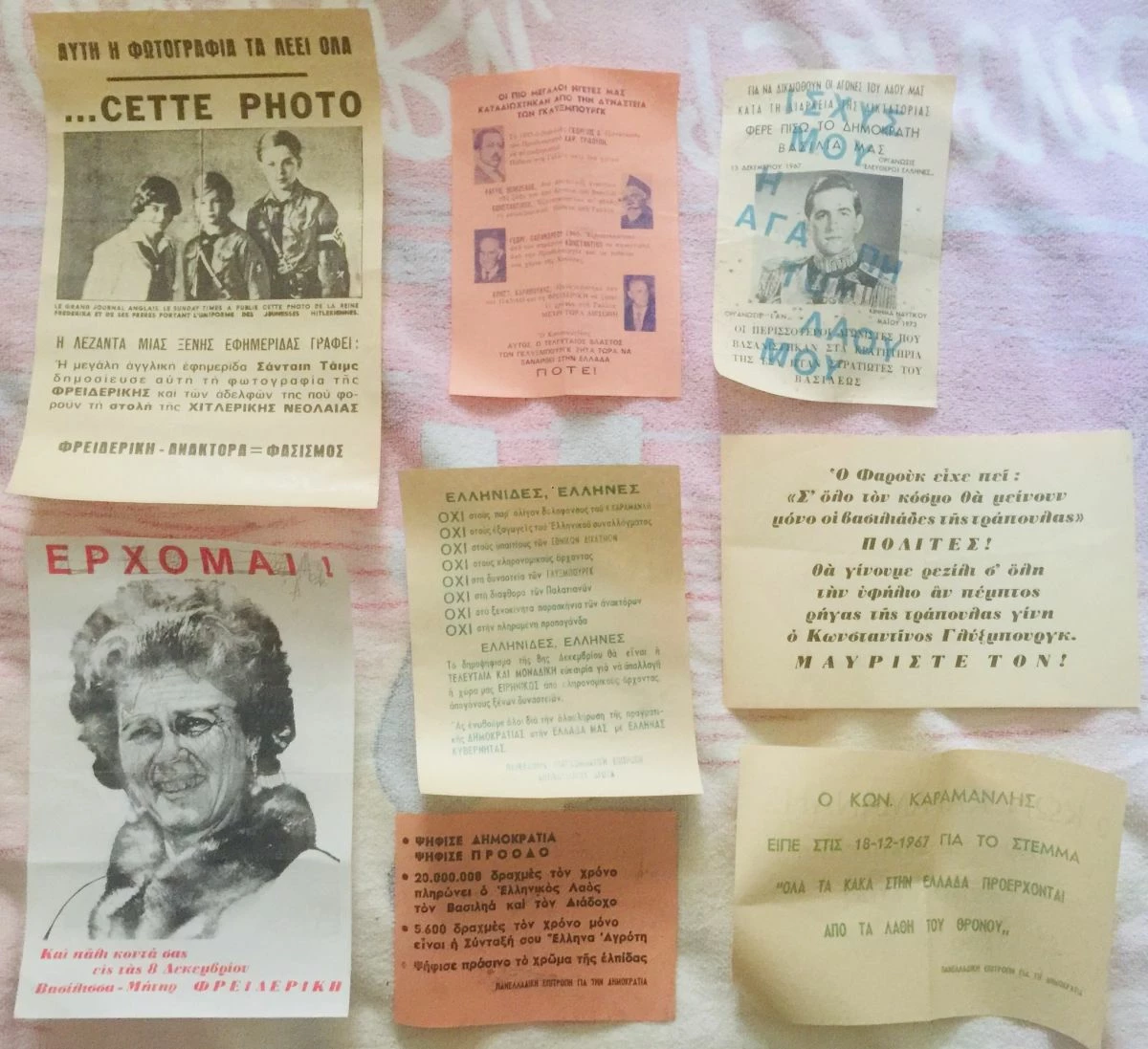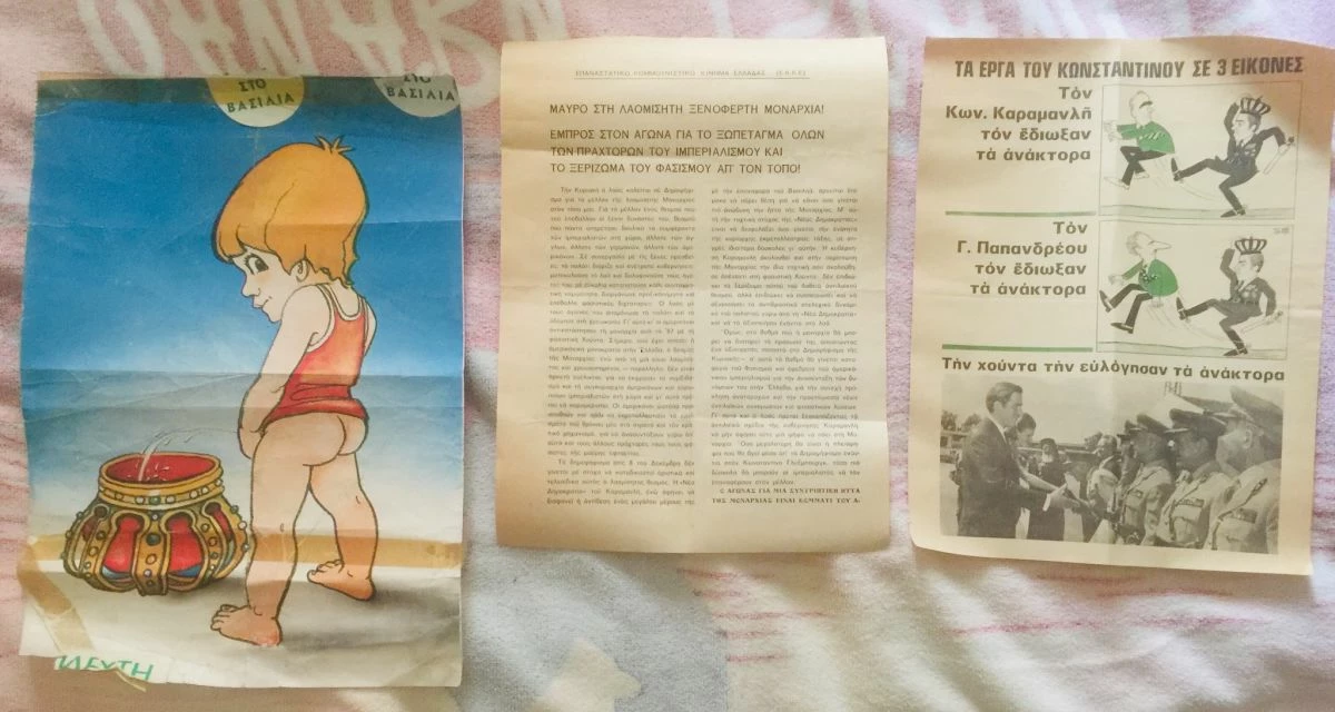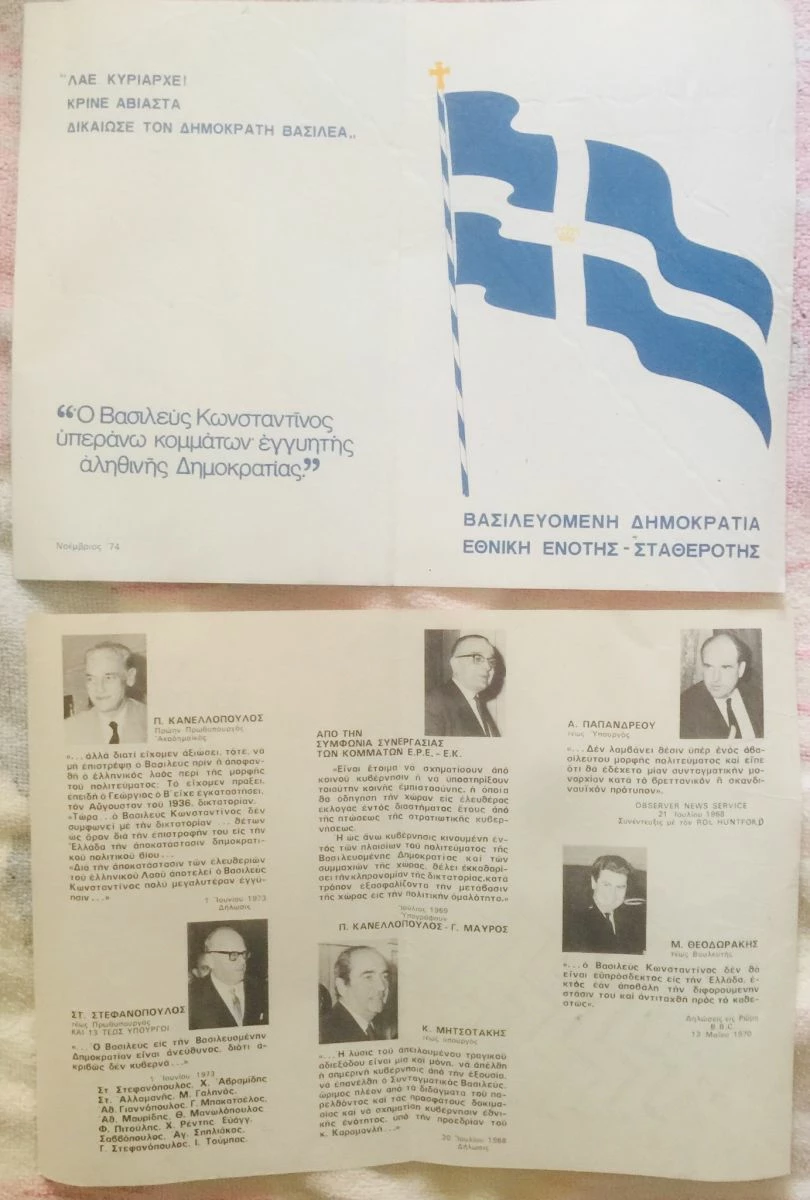 Εξεραιτικα σπάνιο Λοτ με αντίβασιλικά και βασιλικά εντυπα προπαγάνδας πριν το ιστορικό δημοψήφισμα του 1974 που έδιωξε το βασιλικό καθεστώς και γύρισε το πολίτευμα σε δημοκρατικο