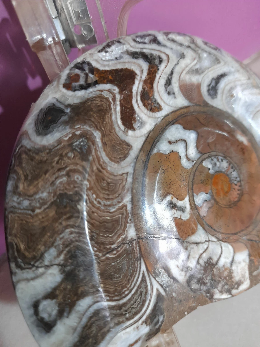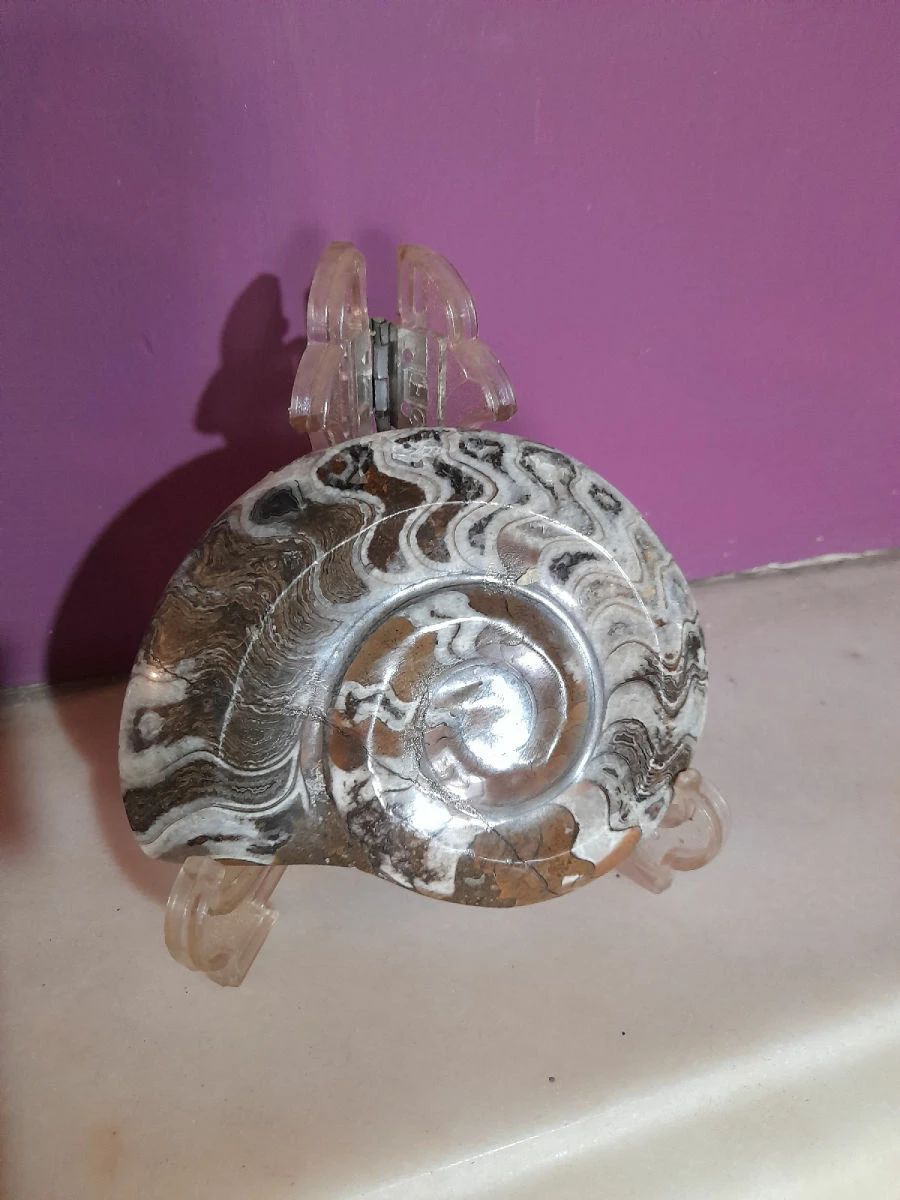 Αμμωνιτης γυαλισμενος 11 εκατοστα, βαση,εχει μια κοληση οπως φαινεται στην κοντινη φωτο.