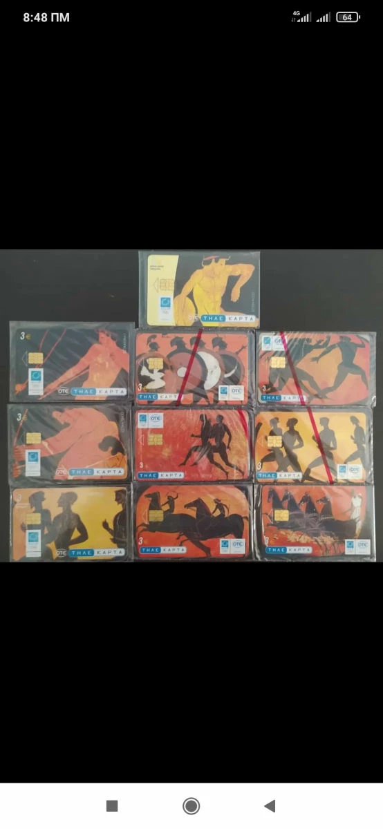Σετ 10 τηλεκαρτες αρχαία ολυμπιακά αγωνισματα με πολυ χαμηλά αντίτυπα. Παραλαβή από Κυψέλη ή αποστολή με ελτα
