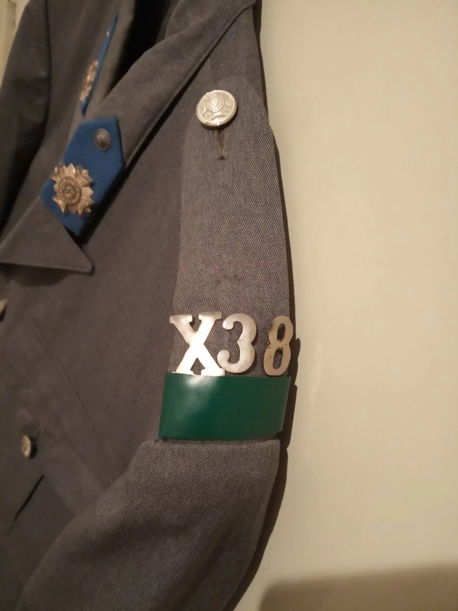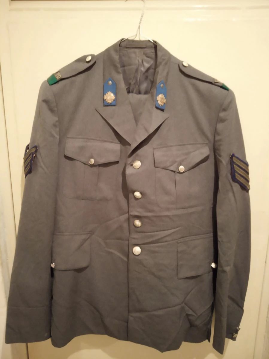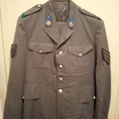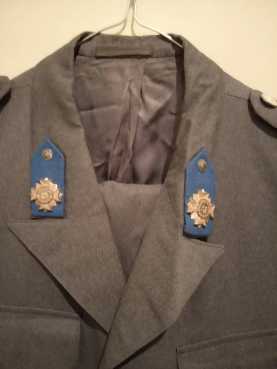Πωλείται η εικονιζομενη στολη (χιτωνιο/παντελονι) απο την AΣΤΥΝΟΜΙΑ ΠΟΛΕΩΝ – αρχιφύλακα, που υπηρετησε στην Αθηνα, όπως φαίνεται από την πράσινη ταινια στην επωμιδα. Δεκαετιας του ’70 (μαλλον, αν όχι παλαιότερη) και σε άριστη κατασταση- θέλει μόνο σιδερωμα!