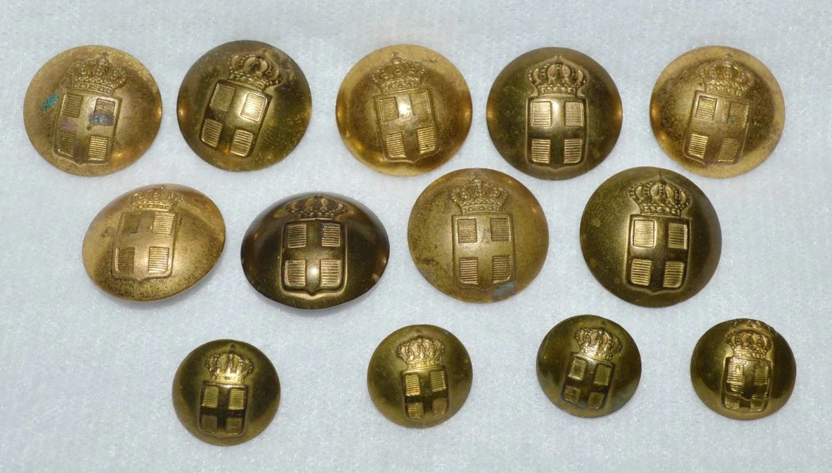 Δεκατρία (13) συλλεκτικά κουμπιά (κούφια) αξιωματικών του Στρατού Ξηράς 1936-1941