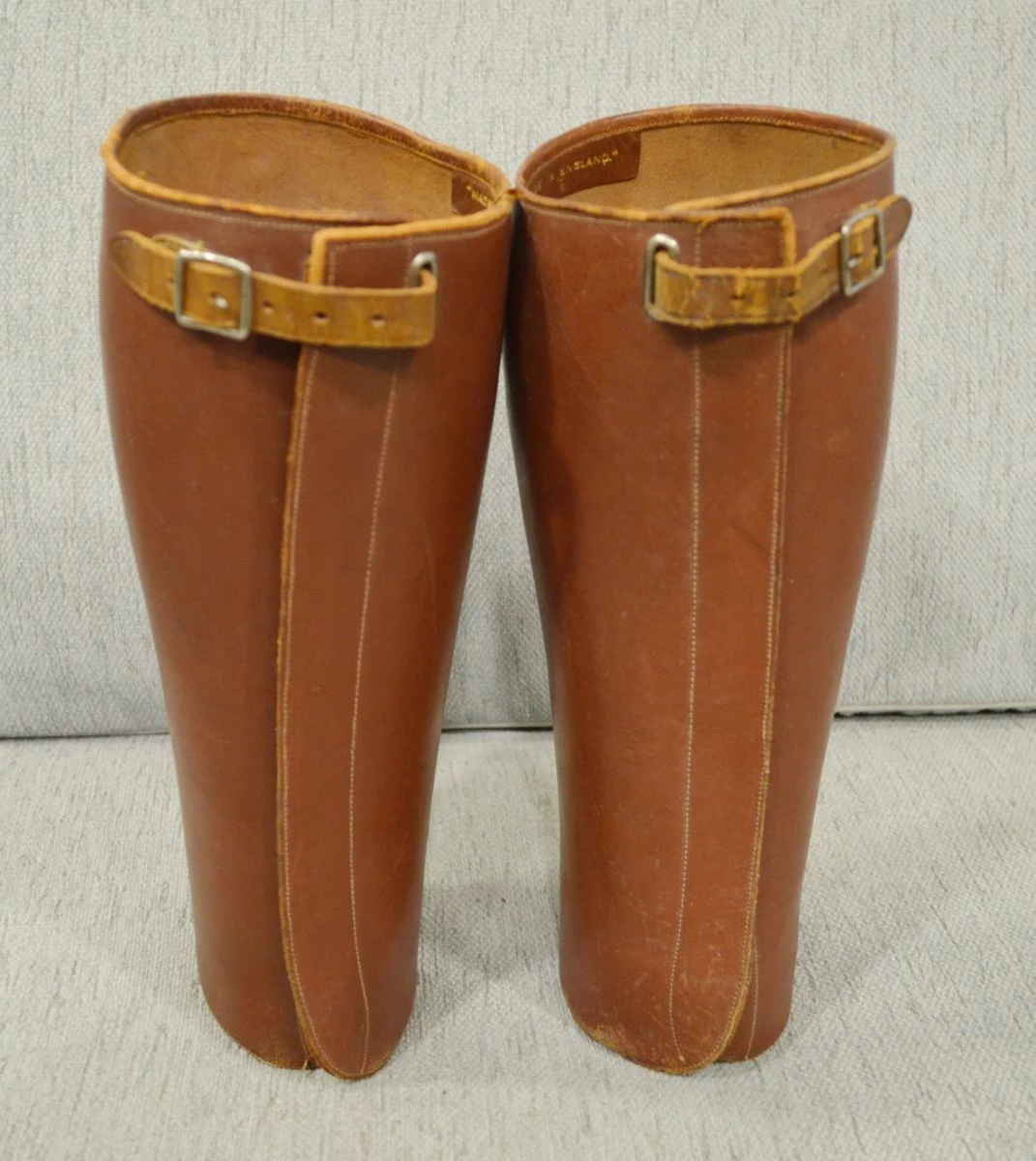 Δερμάτινες περικνημίδες αξιωματικών του Α΄ΠΠ και Β΄ΠΠ Βρετανικής κατασκευής σε άριστη κατάσταση (250 ευρώ).