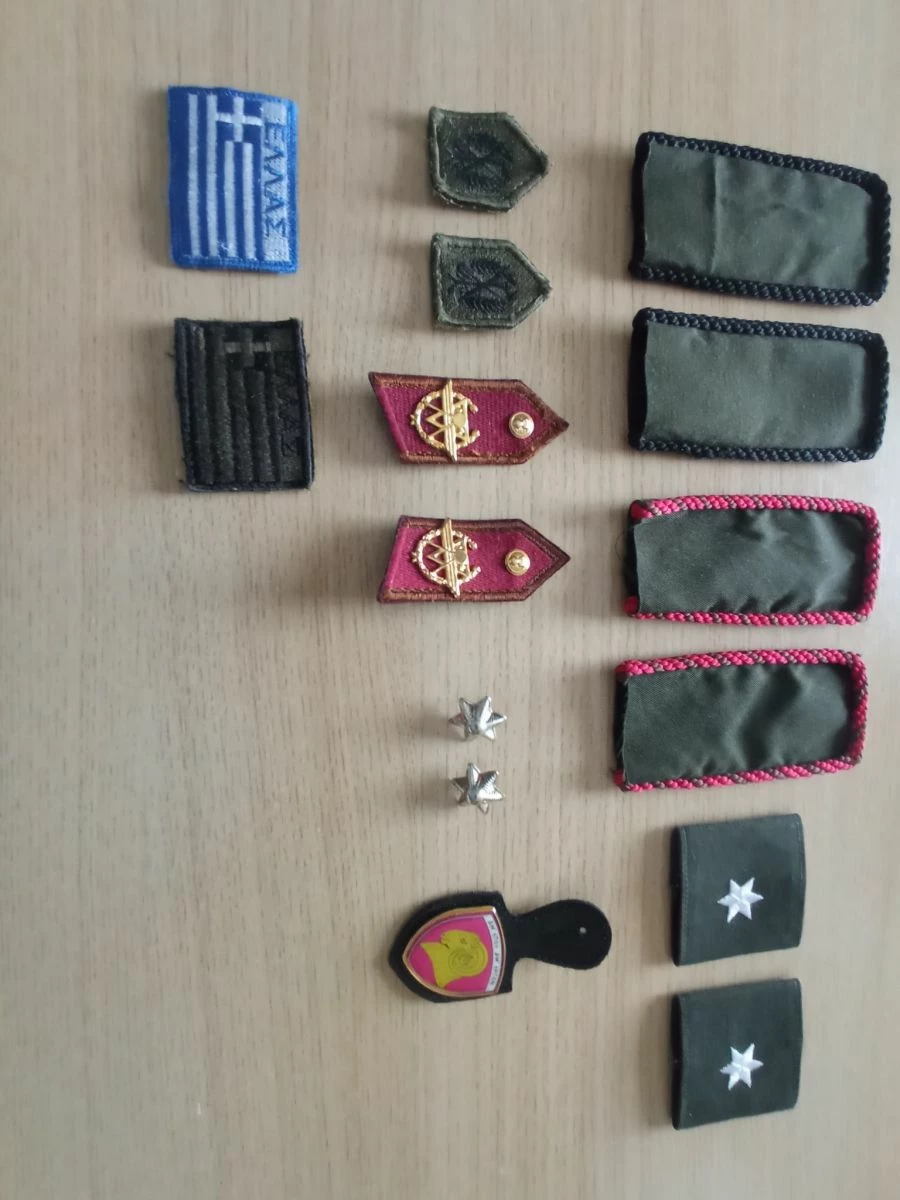 Επωμίδες Jacket και επωμίδες στολής 8Α, ΔΕΑ ΜΧ-Γ. Επωμίδες Ανθυπολοχαγού, διακριτικά Γεωγραφικού Σώματος, μεταλλικά διακριτικά Ανθυπολοχαγού, μεραρχιόσημο Μηχανικού, διακριτικά ΔΕΑ ΜΧ σκράτς για χιτώνιο παραλλαγής, Ελληνική σημαία, επίσημη και χαμηλής ορατότητας.