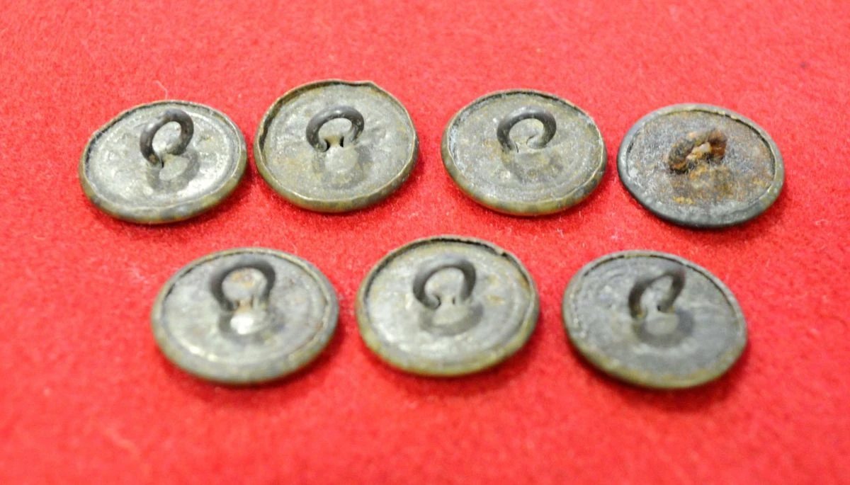 Επτά (7) μπρούτζινα κουμπιά αξιωματικών του Στρατού Ξηράς περιόδου δεκαετιών 1900-1920 (80 ευρώ)