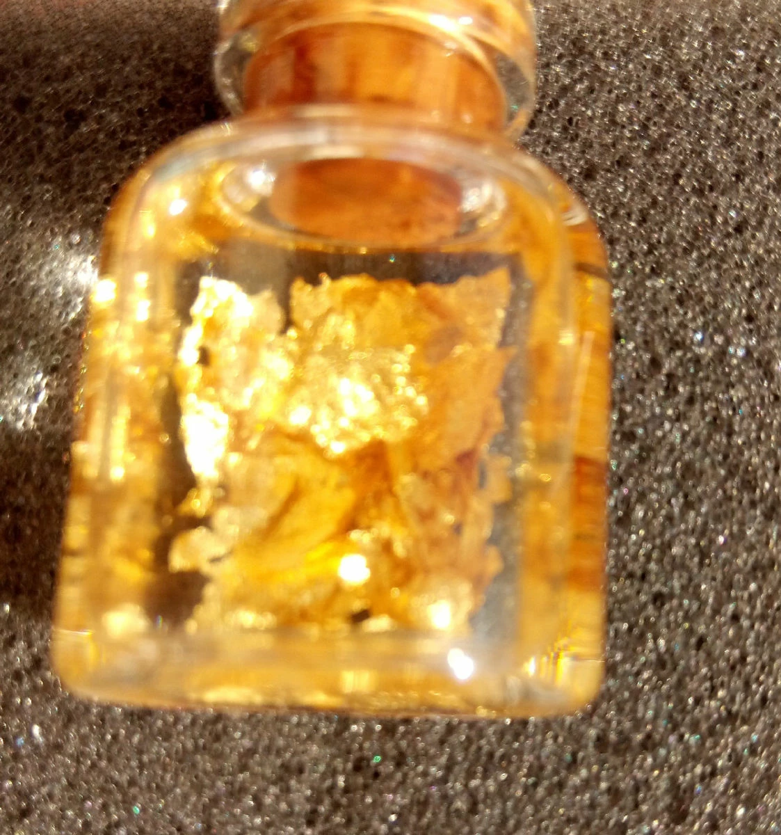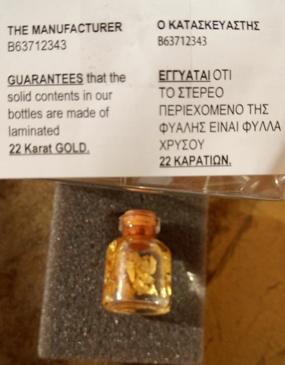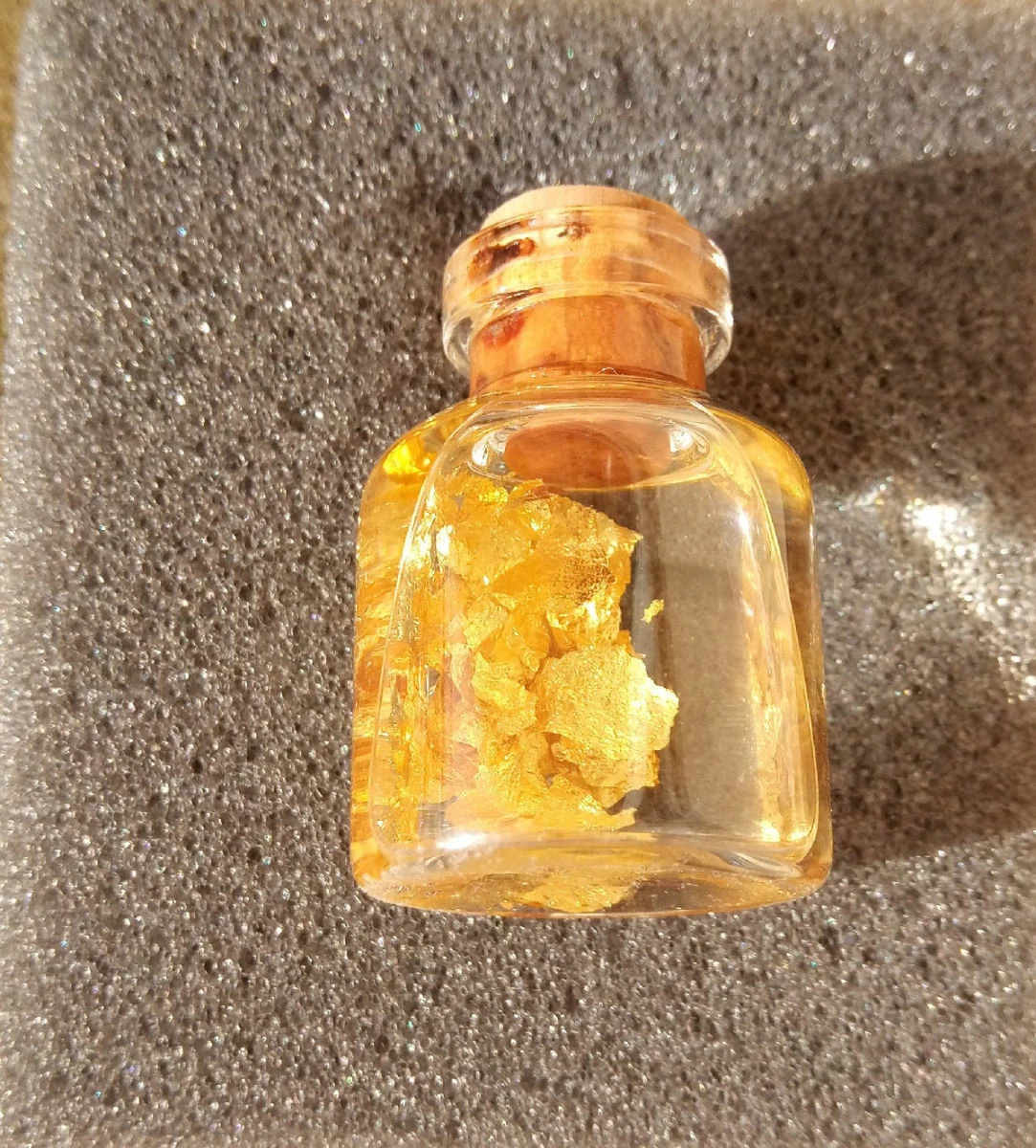 Φύλλα χρυσού 22 Καρατίων που διατηρούνται σε ειδικό μπουκάλακι. Δίνεται με προστατευτική συσκευασία.