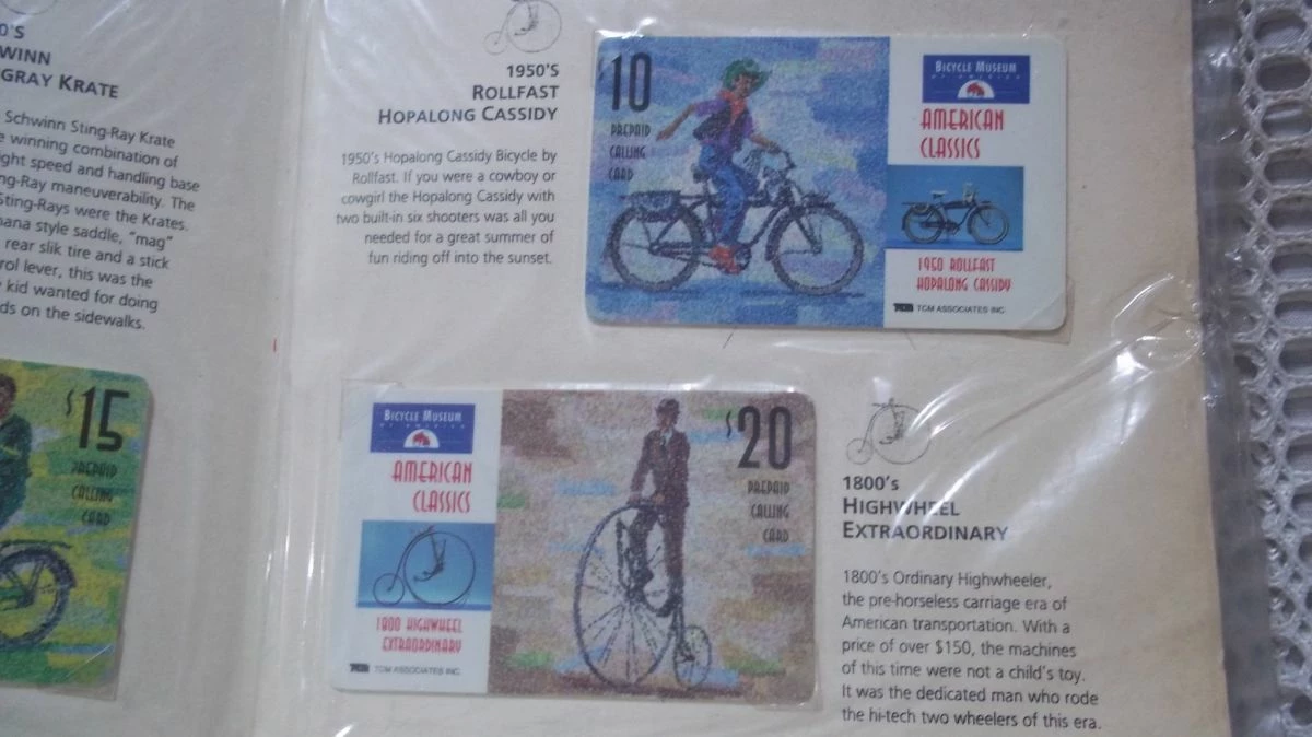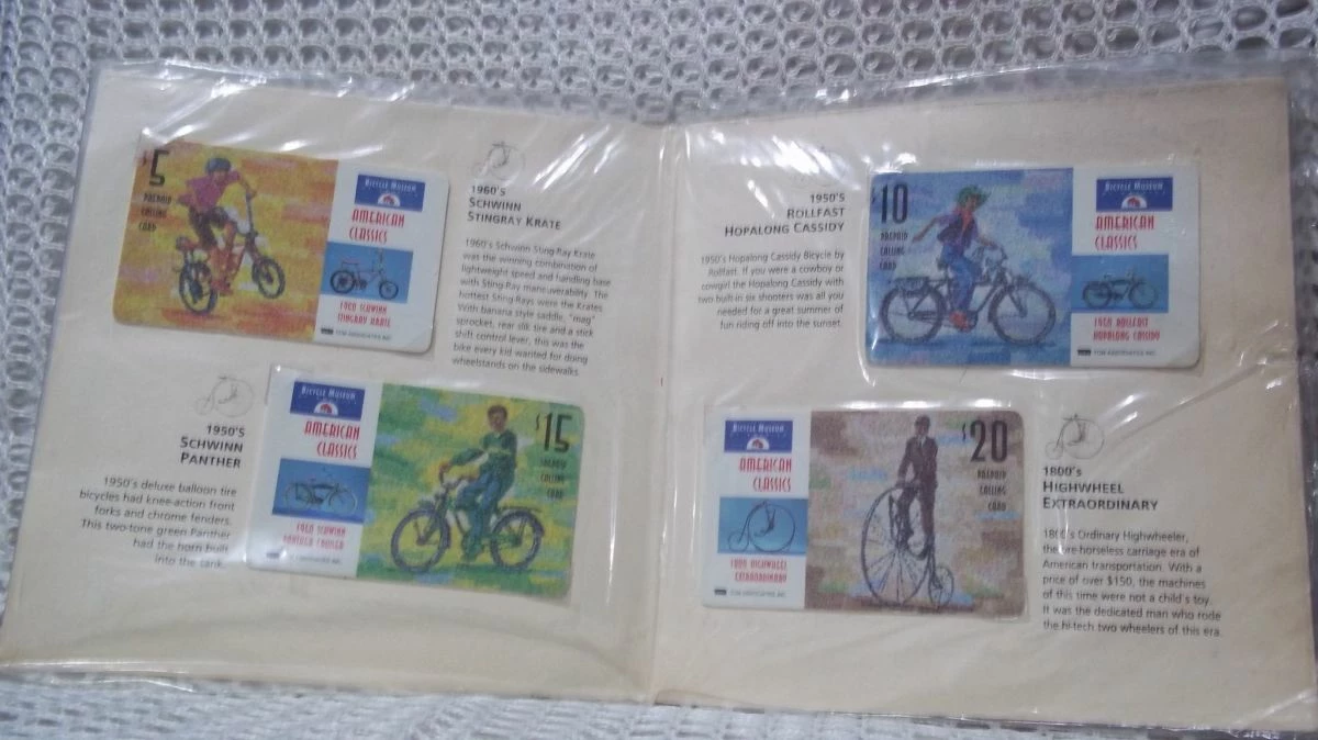 Σειρά τηλεκαρτών Αμερικής με το folder τους από το μουσείο Ποδηλάτων .
