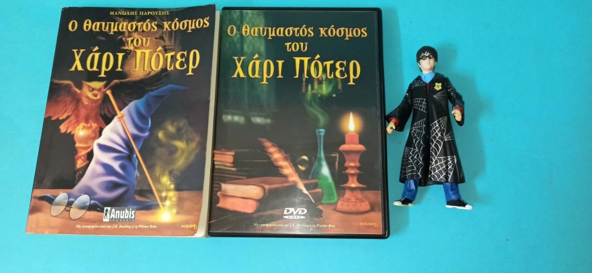 “Ο θαυμαστός κόσμος του Χάρι Πότερ” DVD και βιβλίο από την Anubis, μαζί με φιγούρα Harry Potter, σε καλή κατάσταση.