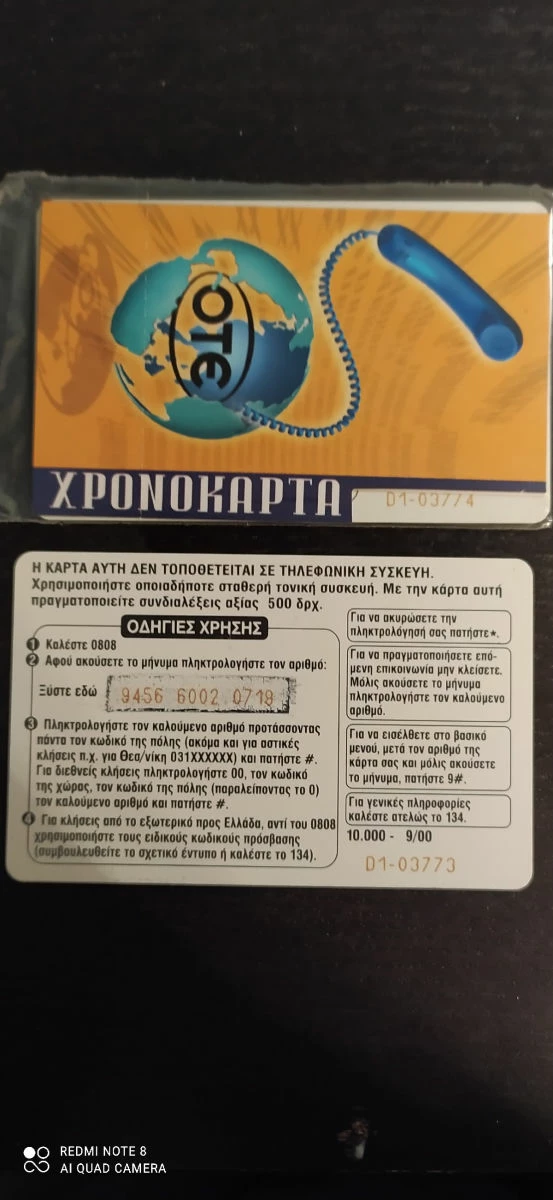 Είναι η τρίτη χρονοκάρτα που κυκλοφόρησε και παραλληλα η 1η διαφημιστική του ΟΤΕ! Αντίτυπα μόλις 10000! Στον νέο κατάλογο έχει 10 ευρώ ανοιχτή και 15 ευρώ κλειστή! Μόνον 1 κλειστή έχει μεινει.