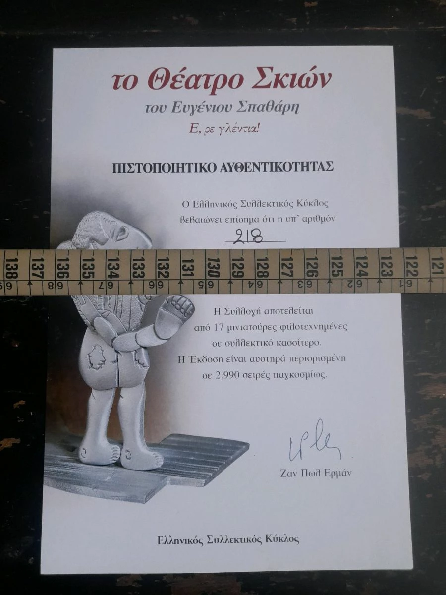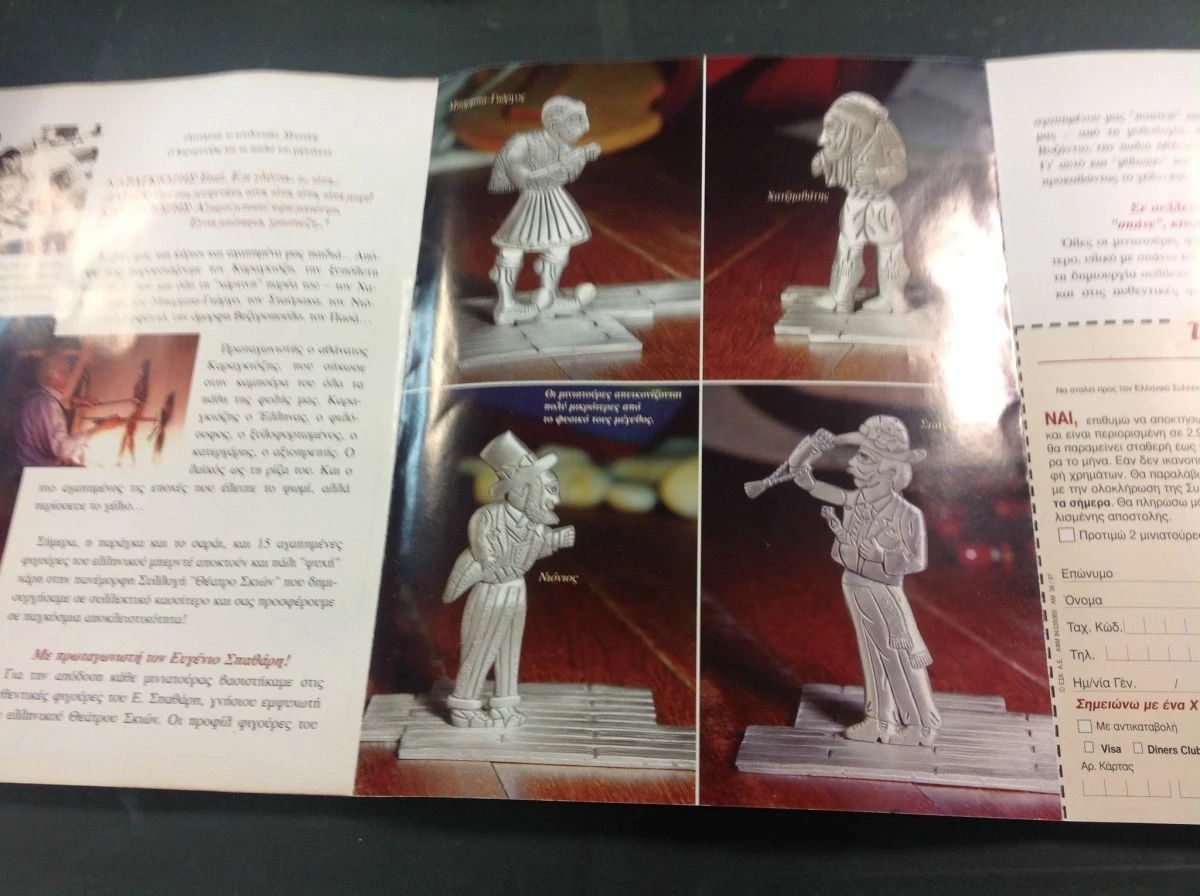 Θεατρο σκιών απο τον ελληνικό συλλεκτικό κύκλο 2990 σειρές παγκοσμίως .15 φιγούρες απο κασσίτερο με το πιστοποιητικό του αυθεντικότητας σαμακοβίου με τον αριθμό 218