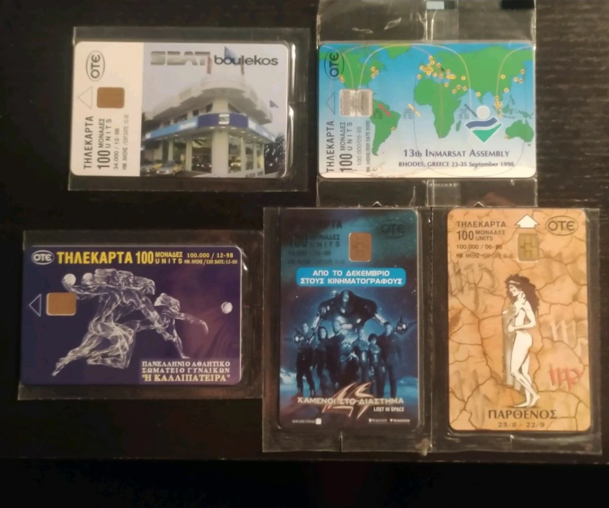 Κλειστές άψογες Τηλεκάρτες του 1998. 1,5 ευρώ η μία. Παραλαβή από Κυψέλη ή αποστολή με ΕΛΤΑ.