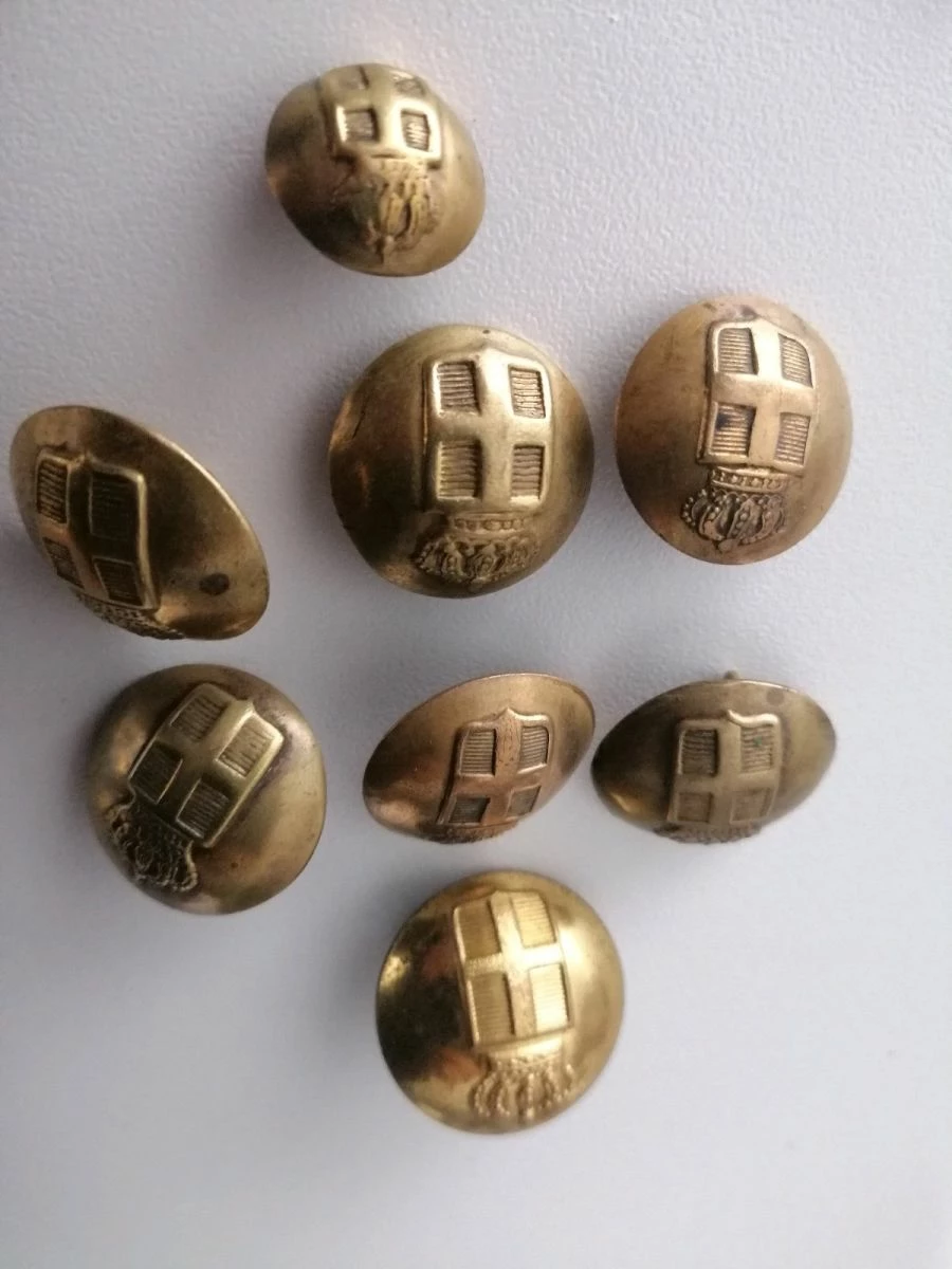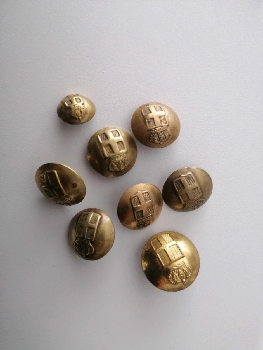 κουμπιά στρατιωτικής στολής 1950 8 κομμάτια σε πολύ καλή κατάσταση.