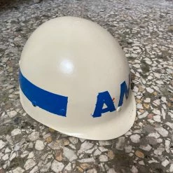 Πλαστικό Εσωτερικό κράνους ελληνικού στρατού, βαμμένο λευκό με μπλε διακρτικά Α.Μ., ασφάλεια μονάδος