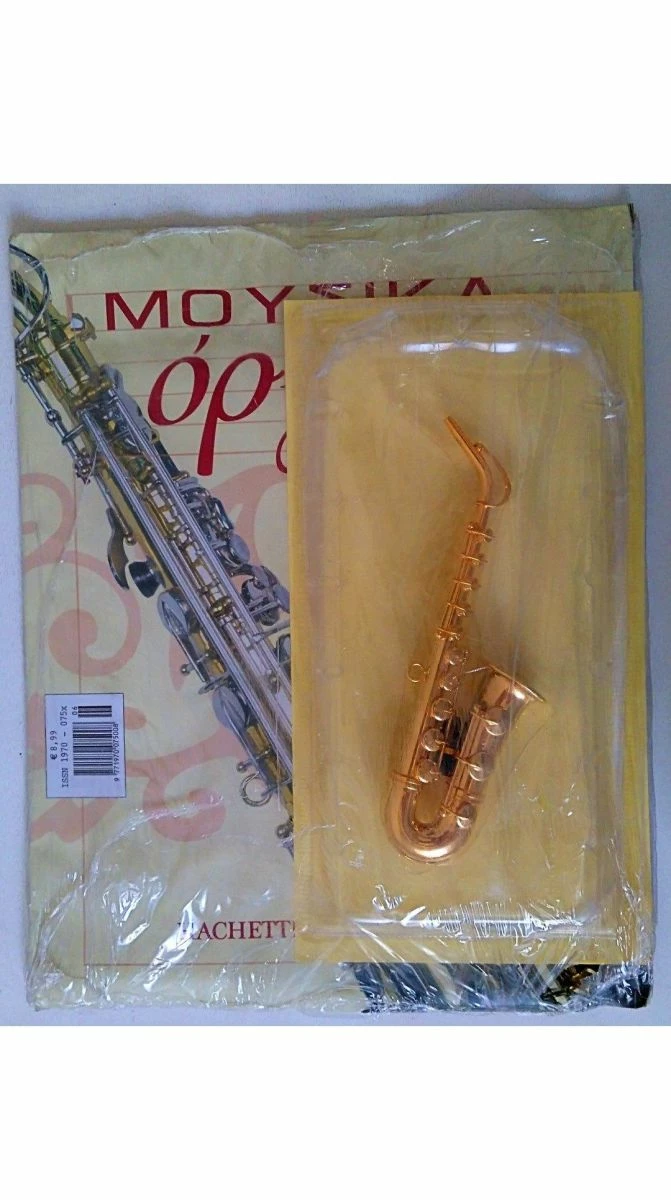” Σαξόφωνο ”Από την συλλογή HACHETTE FASCICOLI, Μουσικά όργανα. Στην ζελατίνα του.