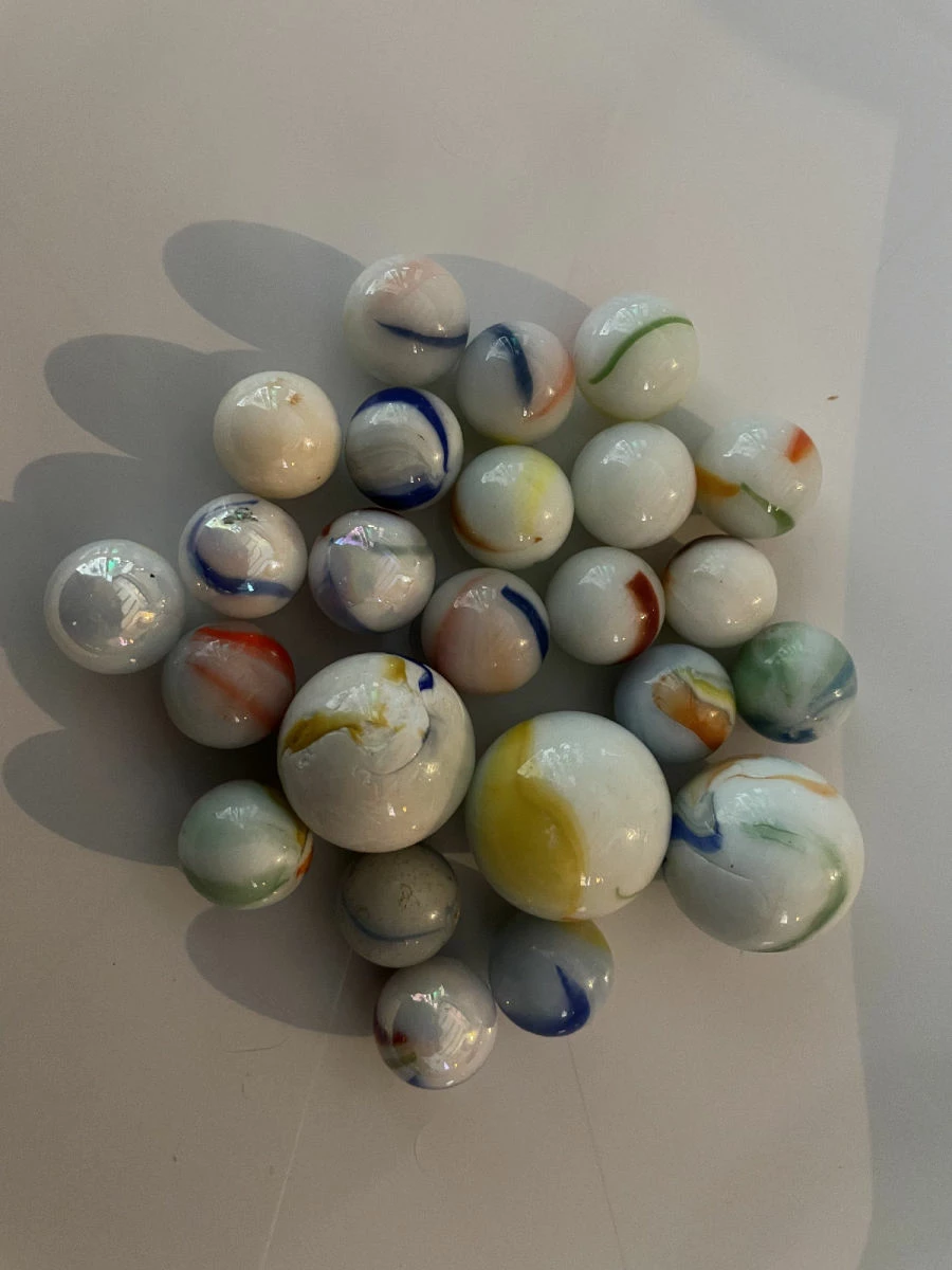 Συλεκτικες μπίλιες σε λευκό χρωμα με σχέδια.