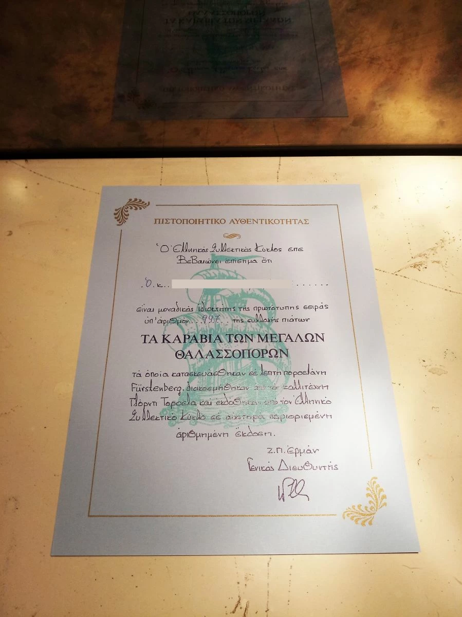 Πιστοποιητικό Αυθεντικότητας από τον (ΕΣΚ)- ΕΛΛΗΝΙΚΟ ΣΥΛΛΕΚΤΙΚΟ ΚΥΚΛΟ