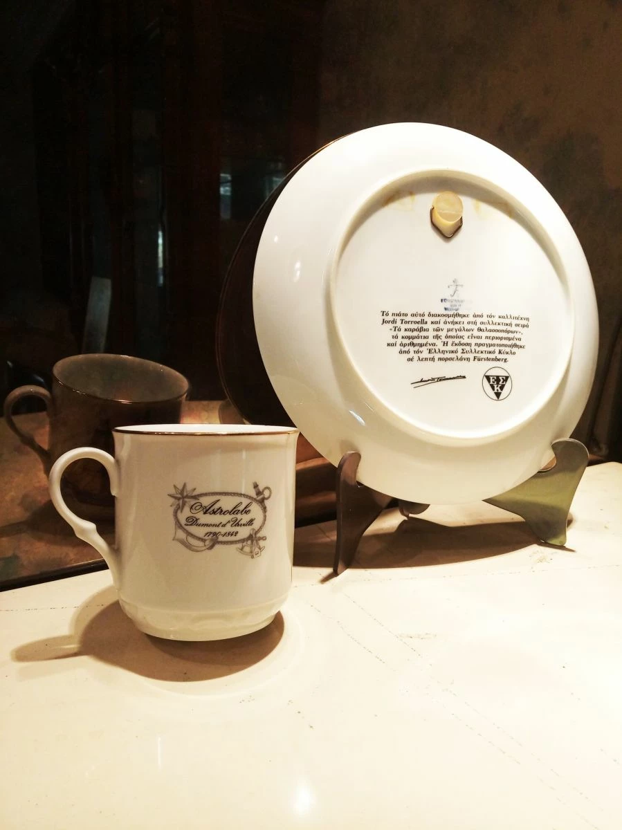 Τα πιάτα και οι αντίστοιχες κούπες τους είναι διακοσμημένα από τον Ισπανό καλλιτέχνη JORDI TORROELLA απεικονίζοντας τα γνωστότερα και σημαντικότερα καράβια εποχής των Μεγάλων Θαλασσοπόρων όπως: το Beagle του Δαρβίνου, το Santa Maria του Χριστόφορου Κολόμβου, το Victoria του Μαγγελάνου, το Sao Gabriel του Βάσκο Ντε Γκάμα κι άλλων ξακουστών εξερευνητών. Η συλλογή αυτή εκδόθηκε από τον ΕΣΚ- ΕΛΛΗΝΙΚΟ ΣΥΛΛΕΚΤΙΚΟ ΚΥΚΛΟ τη δεκαετία του 1980. Το κάθε πιάτο/κούπα φέρει τη σφραγίδα του ΕΣΚ και υπογραφή γνησιότητας του καλλιτέχνη. Τα πιάτα μπορούν να εκτεθούν ως επιτραπέζια (χάρις στην ειδικά σχεδιασμένη τους βάση από plexiglass) αλλά κι ως επιτοίχια – ανάλογα με το χώρο του συλλέκτη. Όλα τα παραπάνω είναι σε άριστη κατάσταση (εκτός από το σημάδι μιας κούπας, όπως φαίνεται στη σχετική φωτογραφία). Αναλυτικές φωτογραφίες ολόκληρης της συλλογής μπορούν να σταλούν κατόπιν αιτήματος.