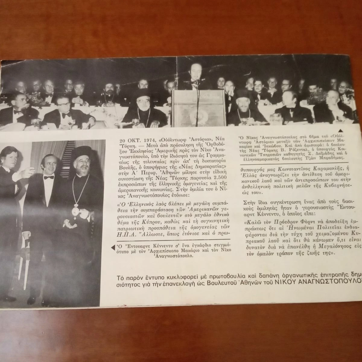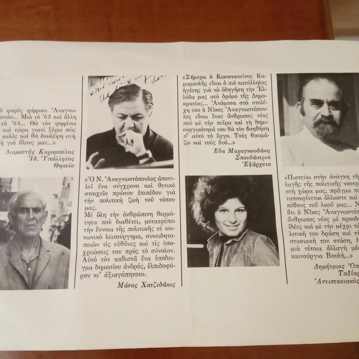 Αναμνηστικό τεύχος για τον υποψηφιό της Ν.Δ Νίκο Αναγνωστόπουλου είχε εκλεγεί επτά φορές βουλευτής και το 1974 είχε αναδειχτεί πρώτος σε σταυρούς σε όλη τη χώρα.