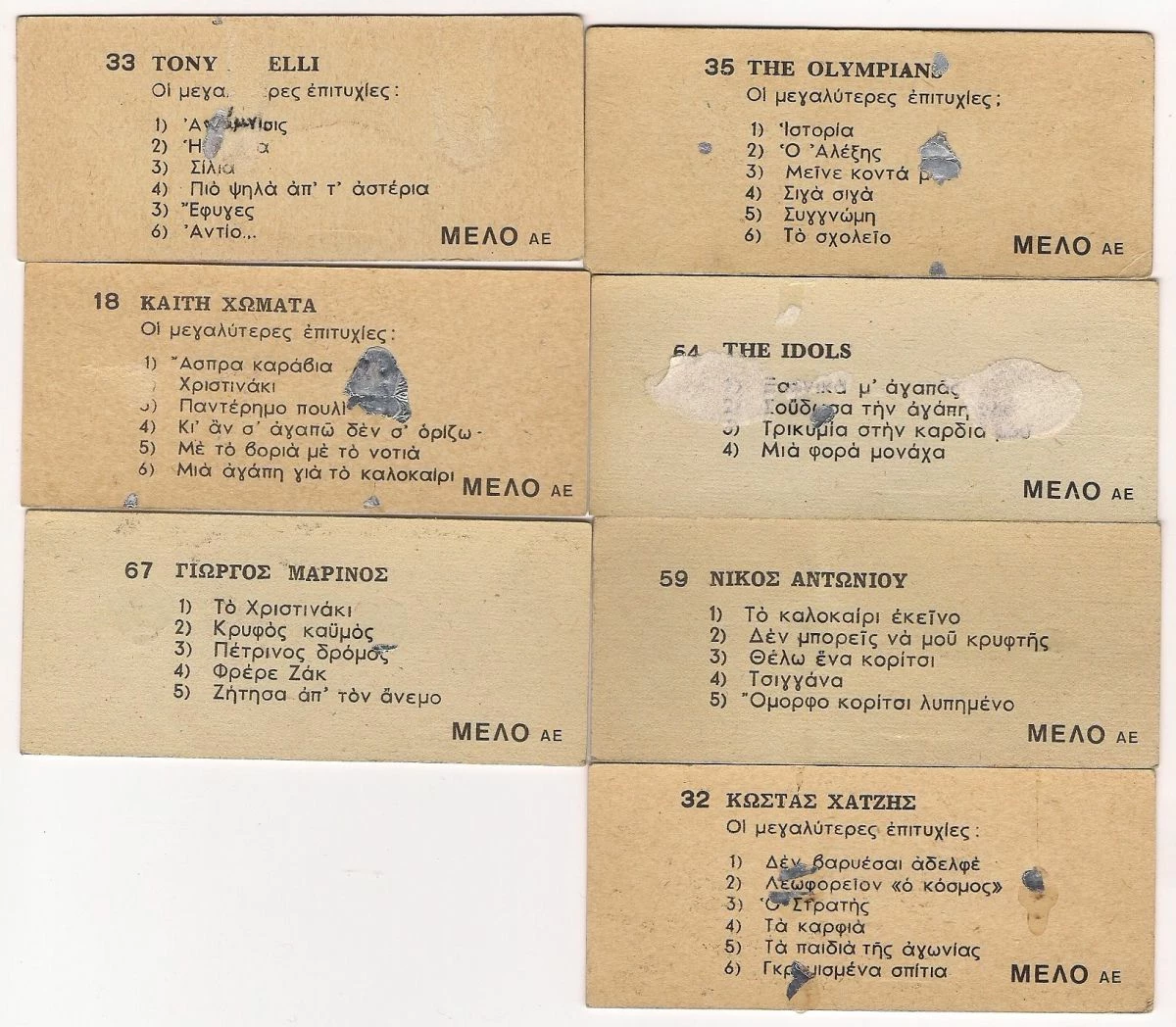 7 ΠΟΛΥ ΣΠΑΝΙΕΣ ΣΥΛΛΕΚΤΙΚΕΣ ΚΑΡΤΕΣ ΠΟΛΥ ΓΝΟΣΤΟΝ ΤΡΑΓΟΥΔΙΣΤΟΝ ΚΑΙ ΣΥΓΚΡΟΤΗΜΑΤΟΝ ΜΕ ΤΗΝ ΔΙΣΚΟΓΡΑΦΙΑ ΤΟΥΣ !!!