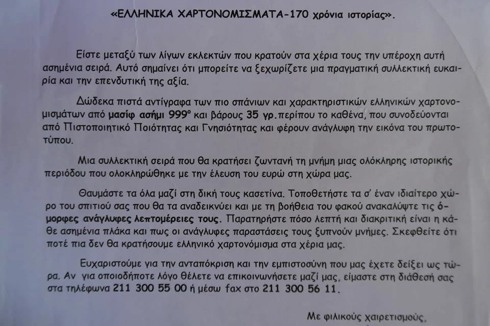 “ΣΥΛΛΟΓΗ ΕΛΛΗΝΙΚΑ ΧΑΡΤΟΝΟΜΙΣΜΑΤΑ 170 ΧΡΟΝΙΑ ΙΣΤΟΡΙΑΣ”.