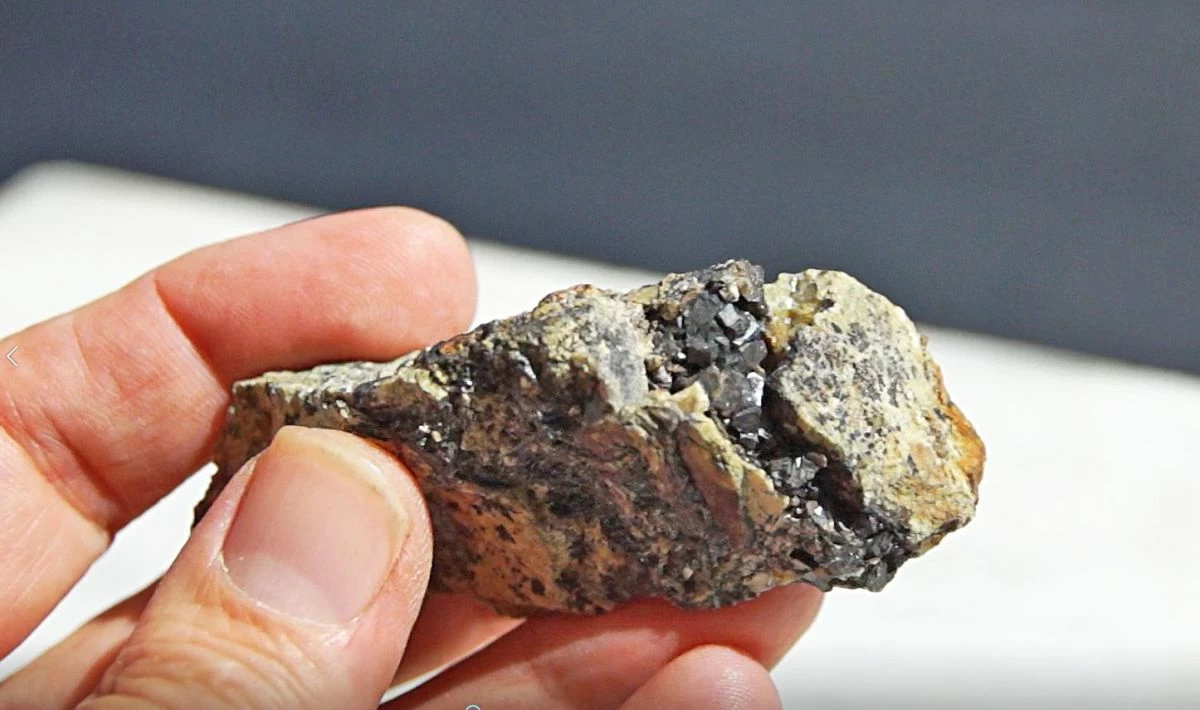 Ορυκτό με κρυστάλους γρανάτες με επικάλυψη αιματίτη , διαστάσεις 7 x 2.5 cm