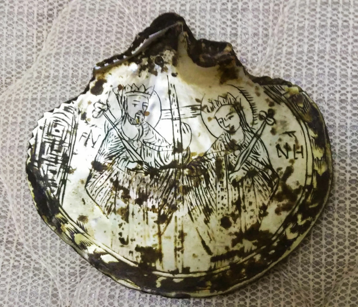 Σε όστρακο χαραγμένες οι μορφές των Αγ.Κωνσταντίνου και Αγ. Ελένης.