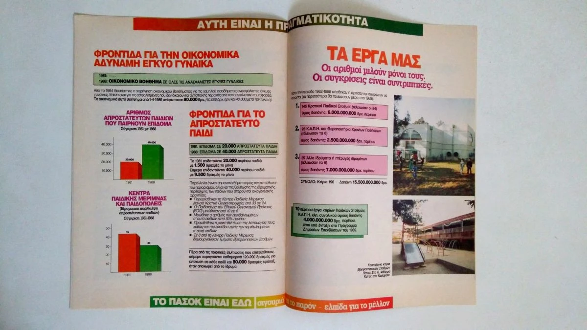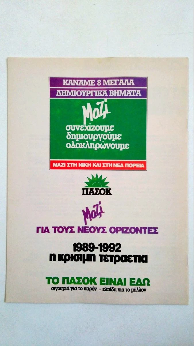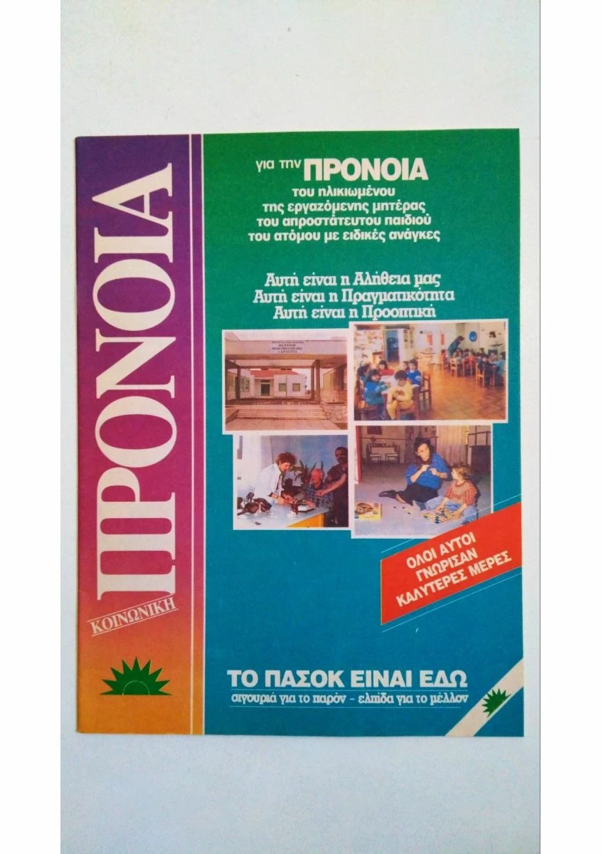 Άριστη κατάσταση, σαν καινούργιο. ΠΑΣΟΚ ” ΠΡΟΝΟΙΑ ” 1989 – 1992 . Προεκλογικό έντυπο εποχής. Ύψος φυλλαδίου 28 εκ. Πλάτος 21 εκ. Περιέχει 22 σελίδες.