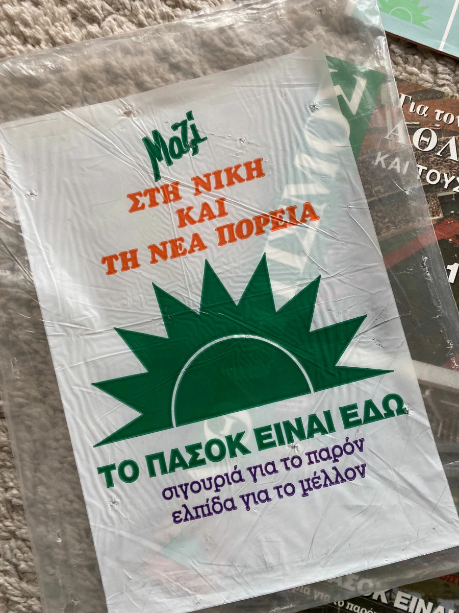 Πλαστικός φάκελος , Σακούλα με διαφημιστικού προεκλογικό υλικό δεκαετίας 80 από το ΠΑ.ΣΟ.Κ. (θ1)