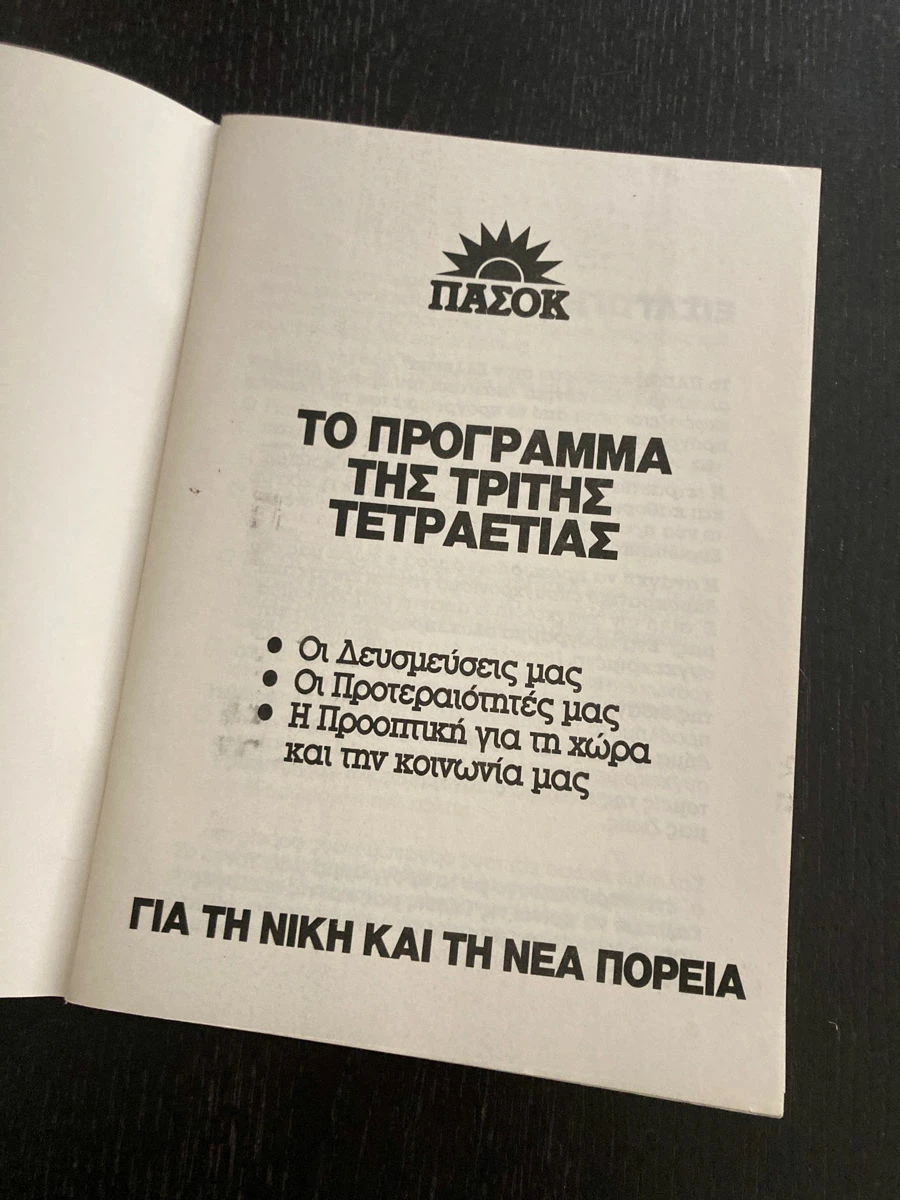 Συλλεκτικό κομμάτι πρόγραμμα διακυβέρνησης Για τις εκλογές του 89 (θ1)