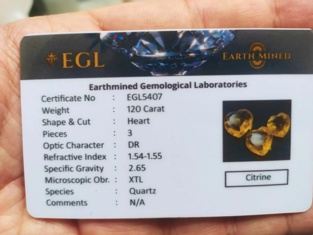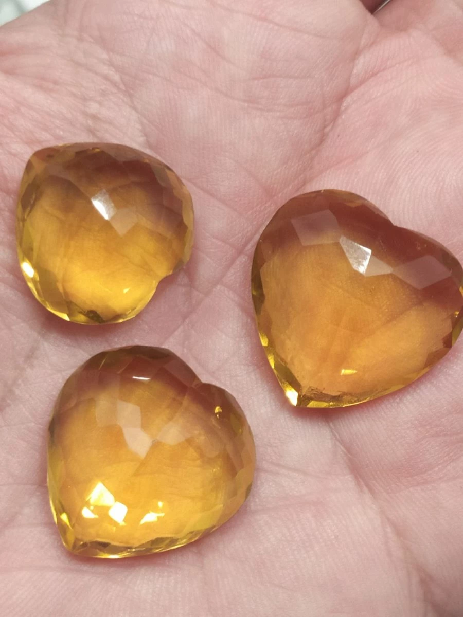 πωλειτε απο συλλεκτη ορυκτων πολυτιμων λιθων, 3 φανταστικα ορυκτα citrine σε σχημα καρδιας σε 3 διαφορετικα μεγεθη συνολο 120 ct με το πιστοποιητικο τους.