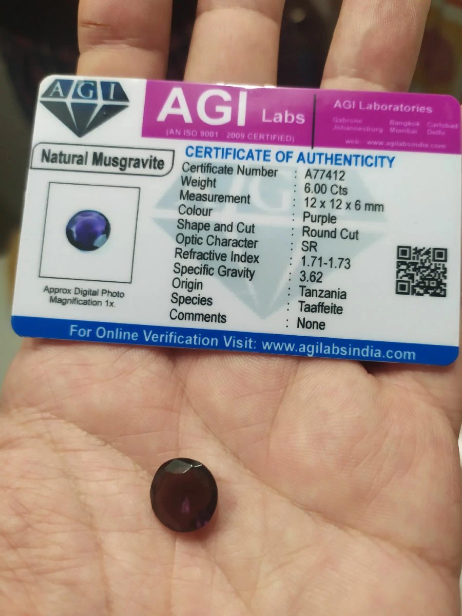 πωλείτε από συλλέκτη ορυκτών πολύτιμων λίθων, εξαιρετικά σπάνια ορυκτή πέτρα musgravite 6 ct με το πιστοποιητικό του.