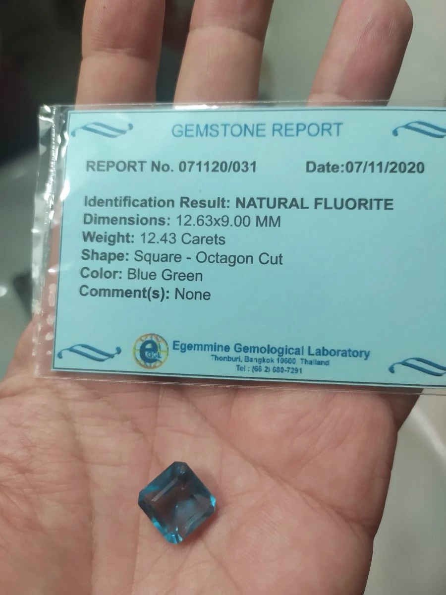 πωλειτε απο συλλεκτη ορυκτων πολυτιμων λιθων μοναδικο μπλε-πρασινος φλωριτης 12,43 ct με το πιστοποιητικο του