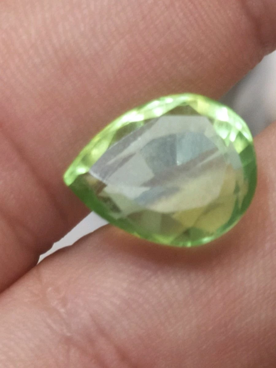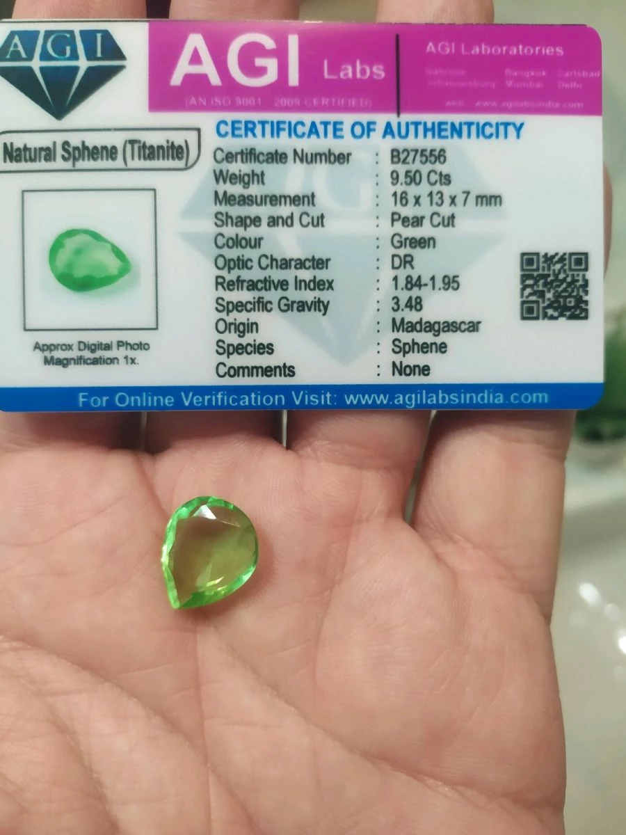 πωλείτε από συλλέκτη ορυκτών πολύτιμων λίθων μοναδικό πράσινο ορυκτό sphene pear cut 9,5 ct με το πιστοποιητικό του