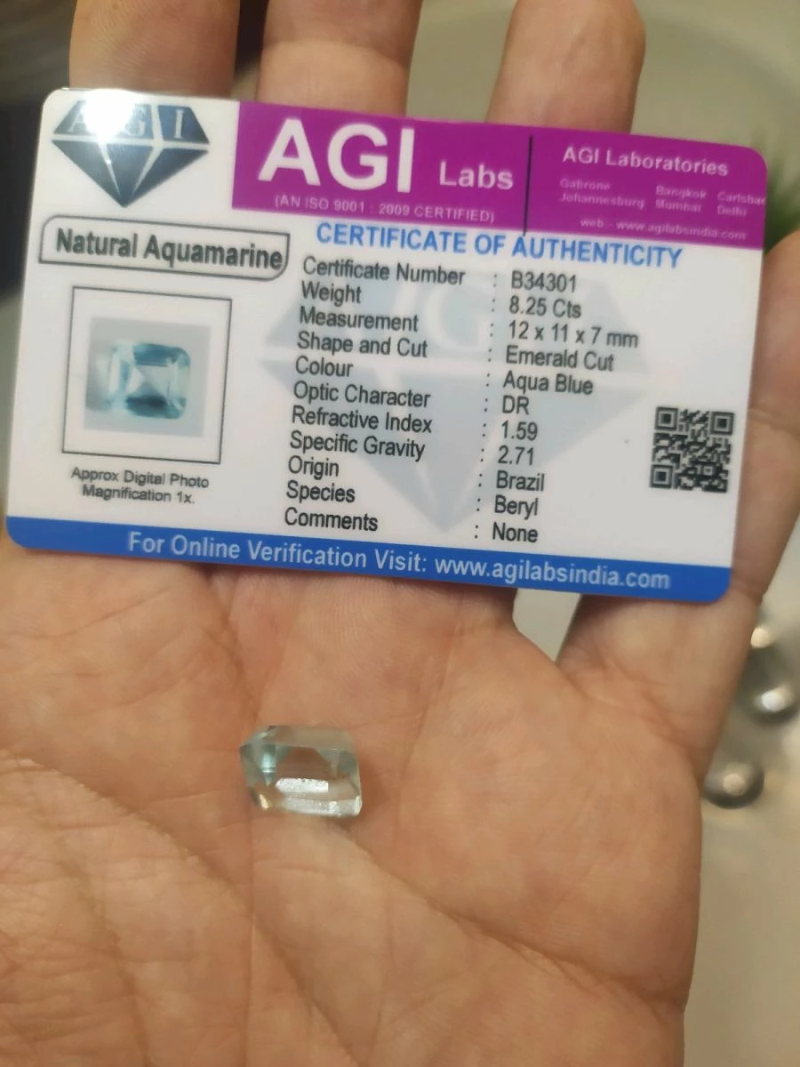 πωλείτε από συλλέκτη ορυκτών πολύτιμων λίθων μοναδικόη γαλάζια ακουαμαρίνα emerland cut 8,25ct με το πιστοποιητικό του