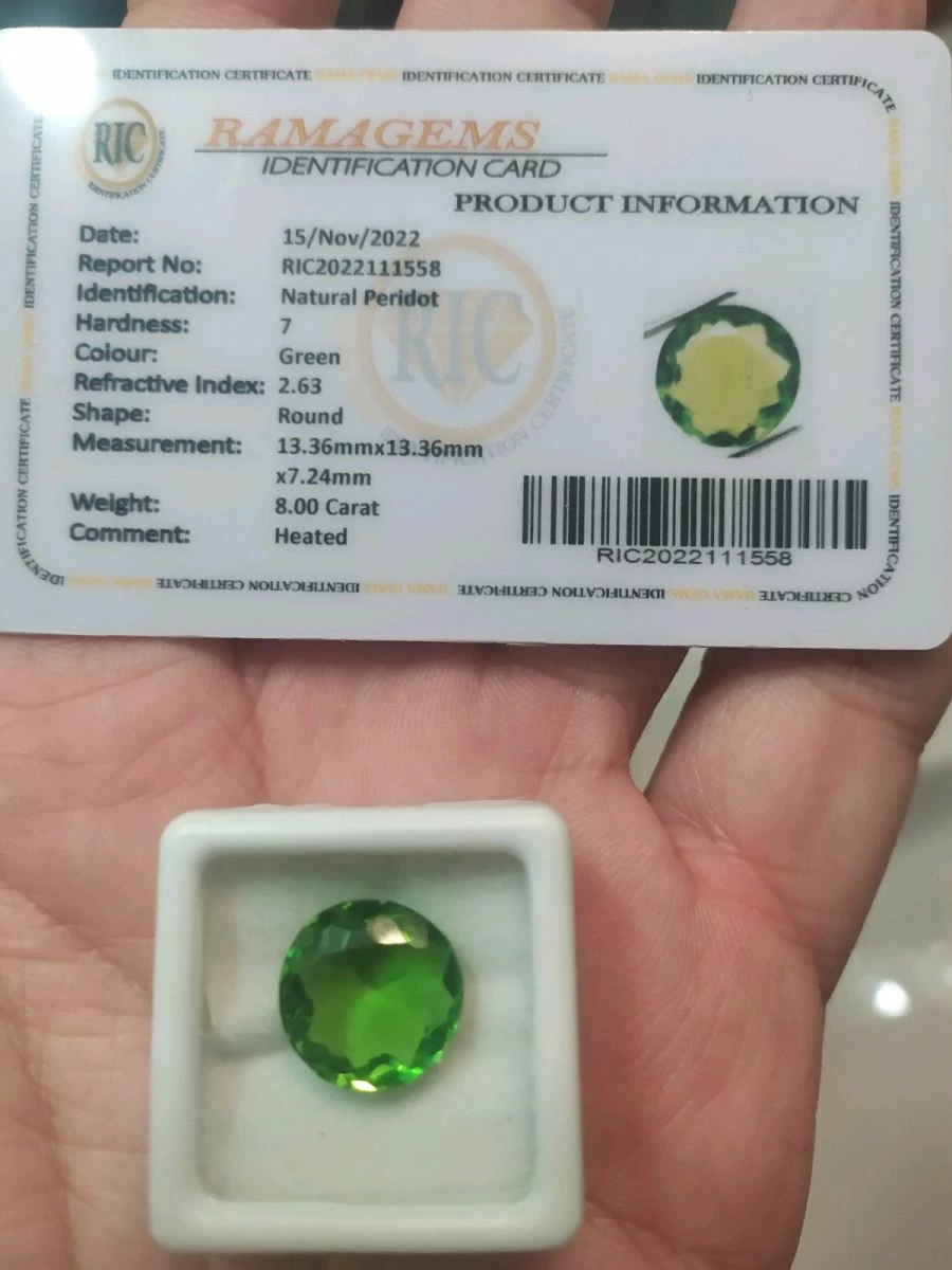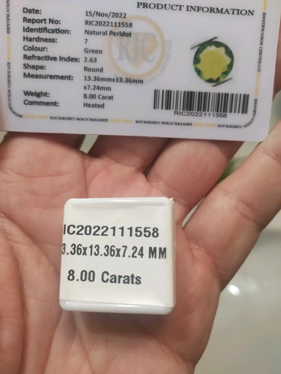 πωλείτε από συλλέκτη ορυκτών πολύτιμων λίθων μοναδικος ορυκτός περιόδοτος στρογγυλός 8 ct με το πιστοποιητικό γνησιοτητας