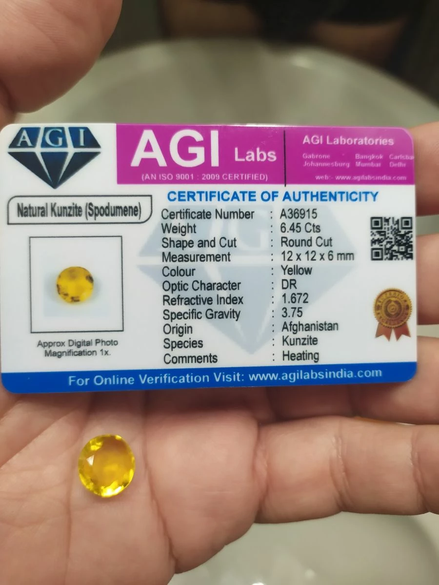 Πωλείτε από συλλέκτη ορυκτών πολύτιμων λιθων ορυκτός κίτρινος κουνζιτης οβάλ από το Αφγανιστάν 6,45 ct με το πιστοποιητικό του.