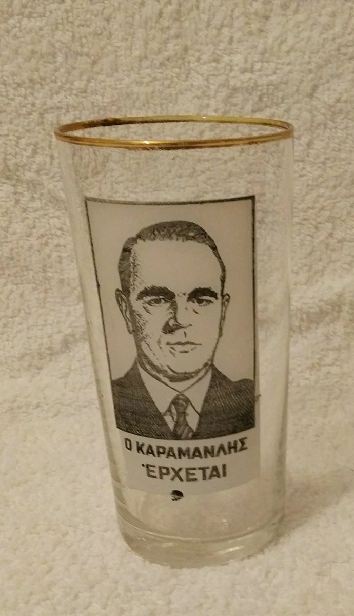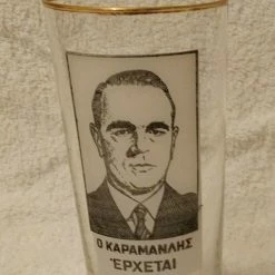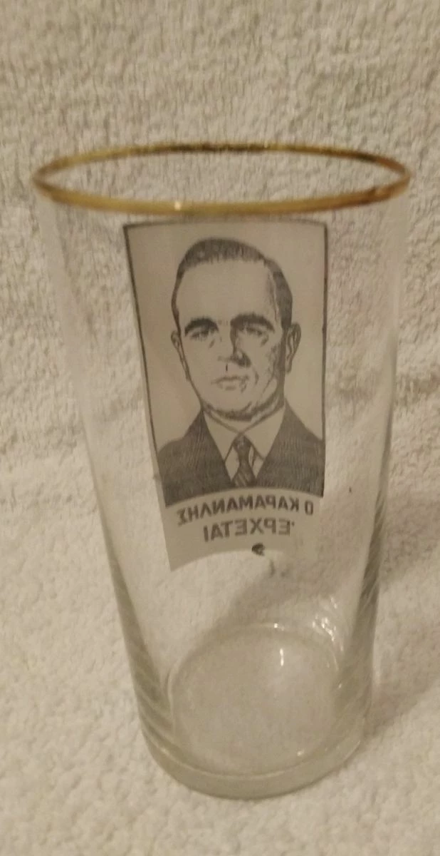 Ποτήρι νερού με απεικόνιση Κωνσταντίνου Καραμανλή. Αχρησιμοποίητο. Αρχές δεκαετίας 60.