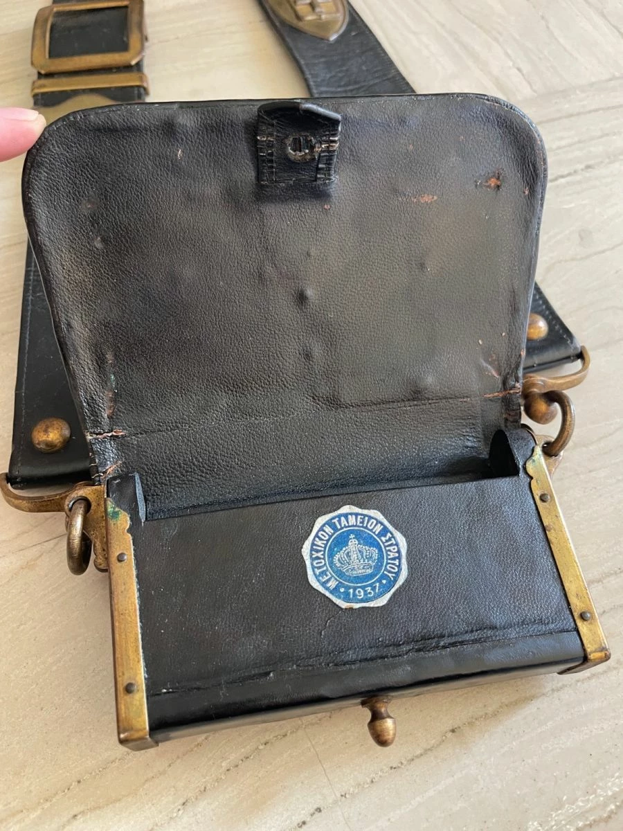 Προπολεμική παλάσκα σε δυσεύρετα εξαιρετική κατάσταση όπως δείχνουν οι φωτογραφιές. Δέρμα μαλακό, μέταλλα χωρίς ατέλειες που δεν έχουν υποστεί γιάλισμα. Αγκράφα, γάντζος και κλείσιμο πλήρως λειτουργικά. Σφραγίδα ΜΤΣ 1937.