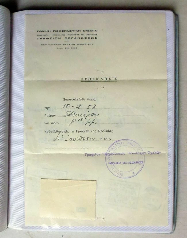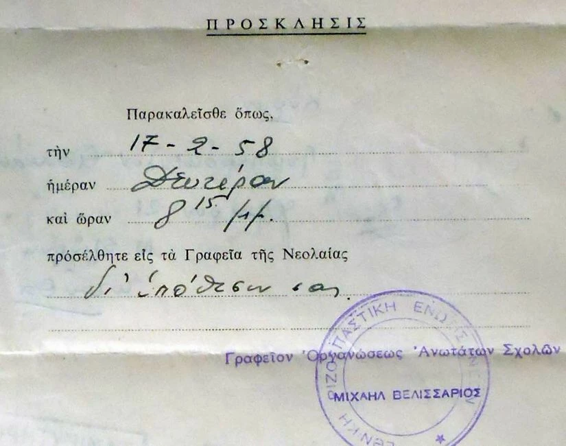 ΠΡΟΣΚΛΗΣΗ ΣΤΑ ΓΡΑΦΕΙΑ ΑΥΣΤΗΡΩΣ ΩΡΑΝ 08:15 ¨ΜΕΛΟΥΣ¨ ΤΗΣ ΝΕΟΛΑΙΑΣ ΕΡΕΝ ΔΙ ΥΠΟΘΕΣΙΝ ΤΟΥ. ΤΑ ΥΠΟΛΟΙΠΑ ΤΗΣ ΥΜΕΤΕΡΑΣ ΚΡΙΣΕΩΣ.