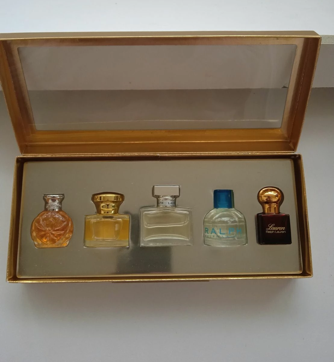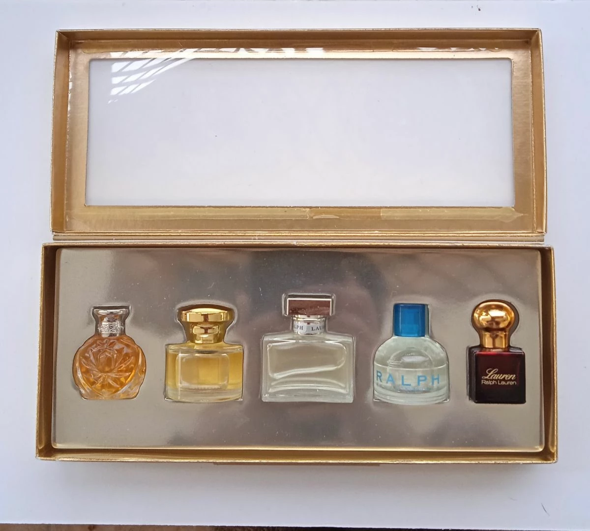 Σετ 5 συλλεκτικές vintage μινιατούρες με αρώματα μέσα στο κουτί τους.