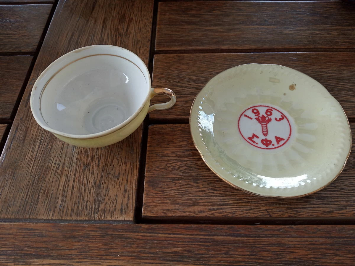 Πωλειται το εικονιζομενο φλυτζανι εποχης με το πιατακι του. Η ενδειξη Σ.Φ.Α ισως ειναι Στρατιωτικες Φυλακες Αθηνων (?). Σε αριστη κατασταση.