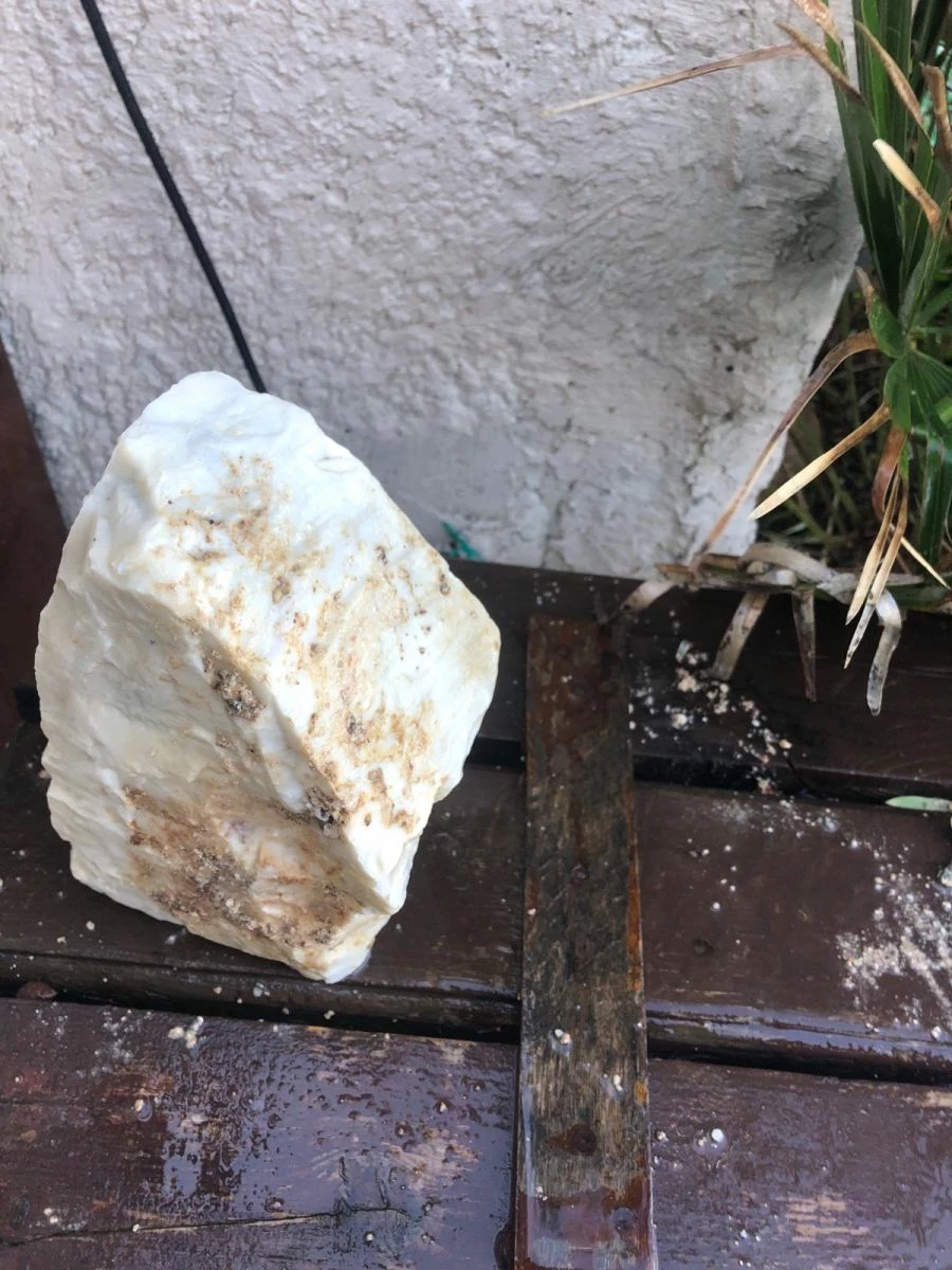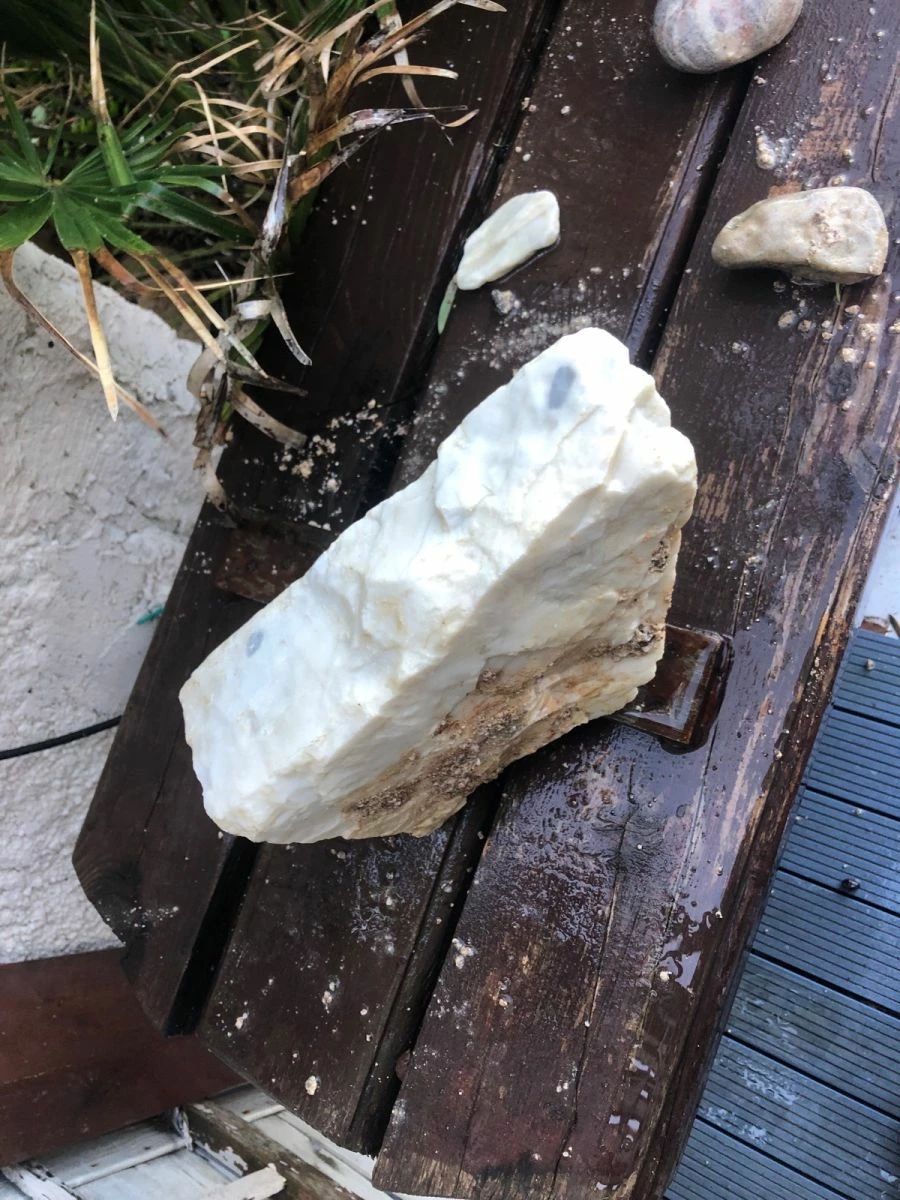 η μάζα του πετρώματος είναι περίπου 2-3 κιλά ,διαθέτει επιβλητικό μέγεθος και το χρώμα του είναι λευκό .Το Πέτρωμα είναι σε προσφορά 50% μέχρι το τέλος των Χριστουγέννων