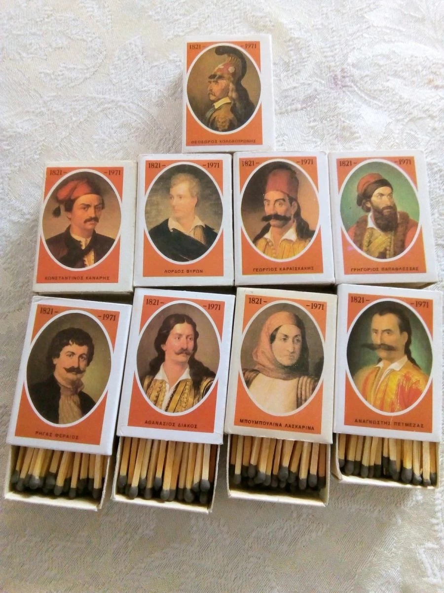 Συλλεκτική σειρά επετειακής έκδοσης σπίρτων (1821-1971) για τα 150 χρόνια από την Ελληνική Επανάσταση, με ήρωες του ’21.