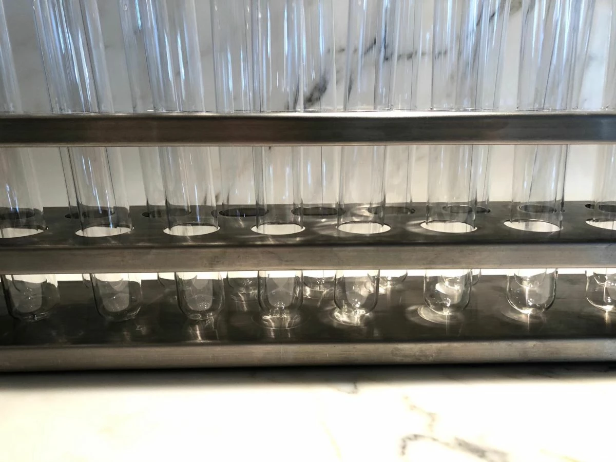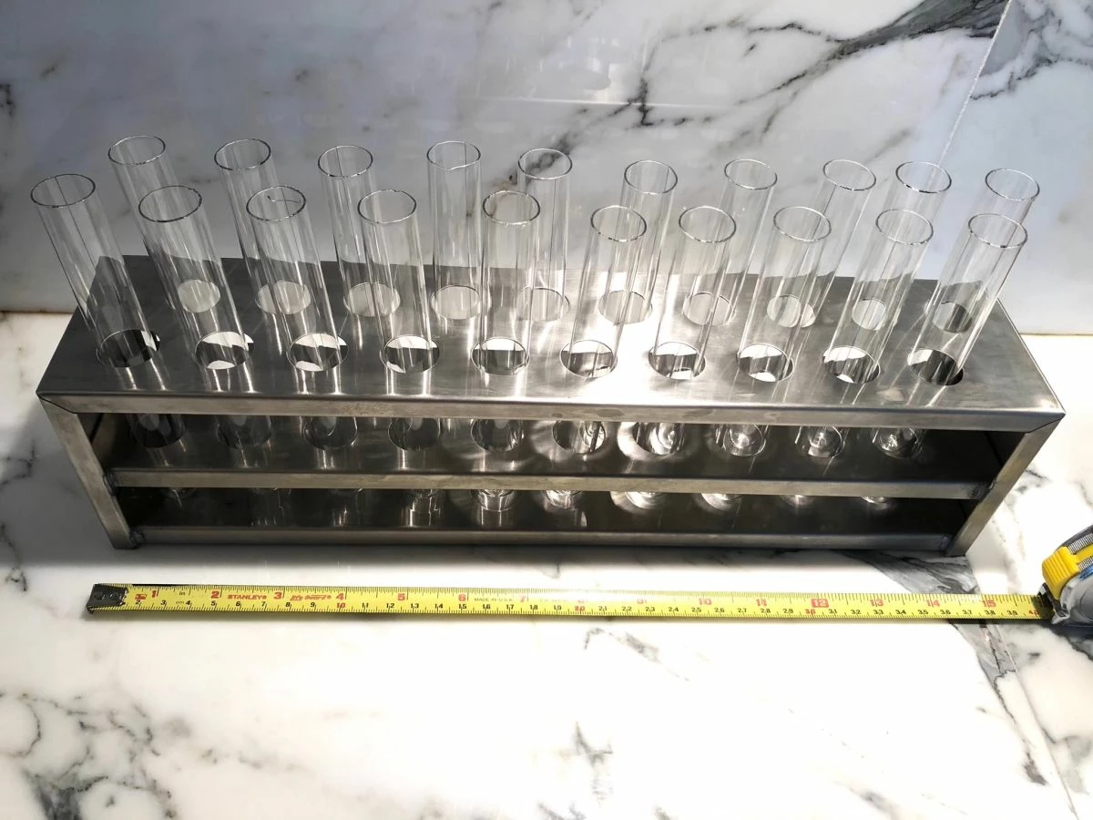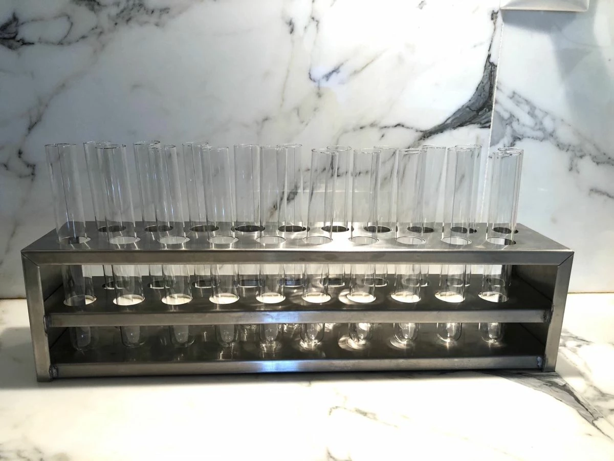 Συλλεκτικό στρατιωτικό ιατρικό στάντ με δοκιμαστικούς σωλήνες του 1950, για συλλέκτες και για διακόσμηση