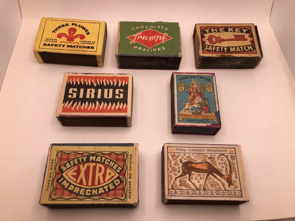 5 σπιρτόκουτα χωρίς σπίρτα και 2 (τα δυο μπροστινά) γεμάτα με σπίρτα
